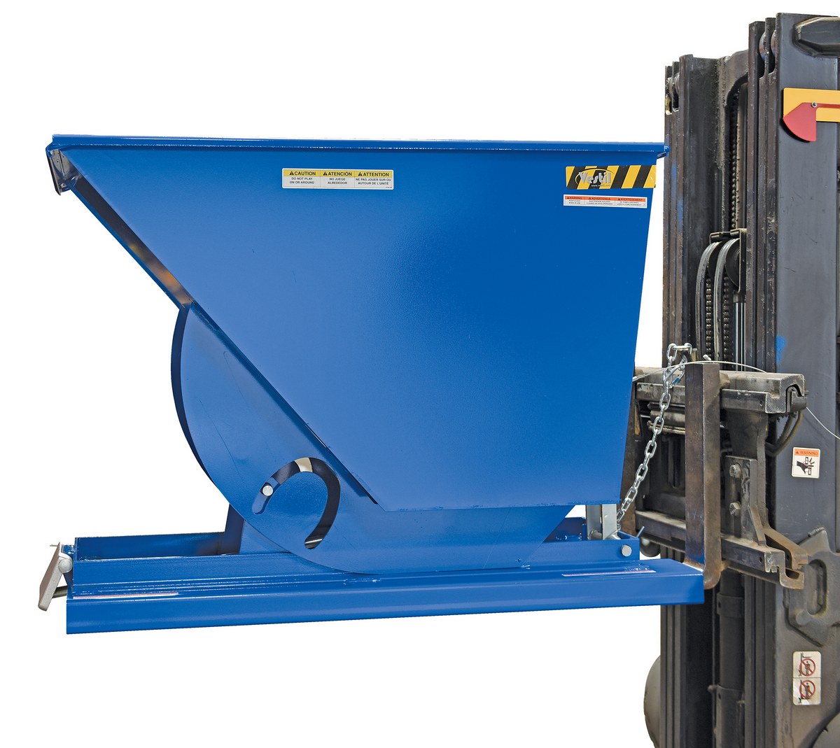 • Safety restraint secures the hopper to the fork truck