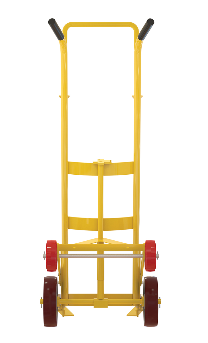 Steel Drum Truck with 4 Rigid Poly Wheels for Plastic Drums 1000 Lb. Capacity YellowDesigned for moving 55 gallon plastic drums. Features a spring mechanism, which allows for easier tilting of fully-loaded drums. Four-wheel design for easier drum transportation when tilted. Top loop handle allows for easier control when moving. Drum is secured to truck with an adjustable height drum hook bar. Removable drum hook bar includes built-in bung nut wrenches. Capacity is 1,000 pounds. Steel construction with powder coat finish.