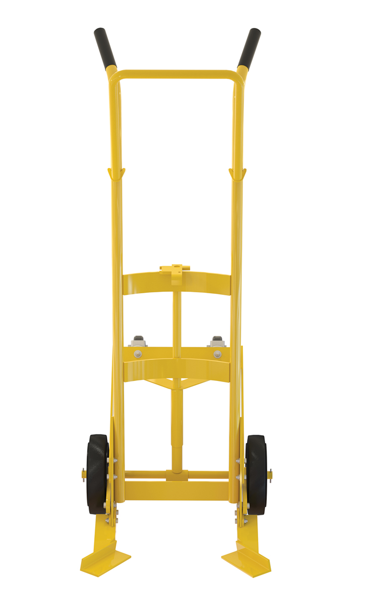 Steel Drum Truck with 2 Rigid/2 Swivel Rubber Wheels for Plastic Drums 1000 Lb. Capacity YellowDesigned for moving 55 gallon plastic drums. Features a spring mechanism, which allows for easier tilting of fully-loaded drums. Four-wheel design for easier drum transportation when tilted. Top loop handle allows for easier control when moving. Drum is secured to truck with an adjustable height drum hook bar. Removable drum hook bar includes built-in bung nut wrenches. Capacity is 1,000 pounds. Steel construction with powder coat finish.