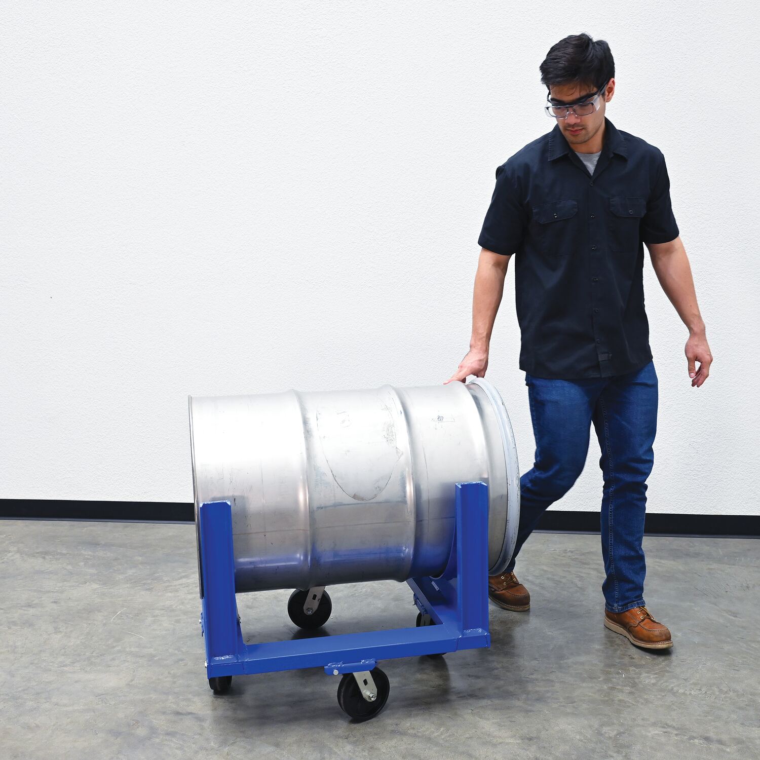 Move and store pipe, channel, bar stock, barrels, or drums with this Heavy Duty cradle cart. A large open design that makes loading and unloading by fork trucks and slings easy. All welded construction. Wheels are mounted in a diamond pattern to allow the truck to tilt when going over thresholds and turn about on its own center. Lightweight Aluminum cradle cart fits all small to medium loads. Powder coat finish standard on steel cart.