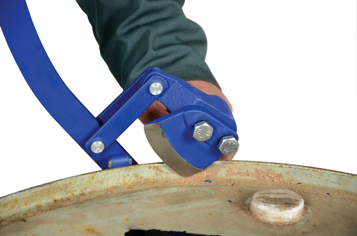 Convert your closed head steel drums into storage containers with this manual drum Deheader. Adjustments can be made to open steel drums with different thicknesses. The blade is angled for maximum penetration and flattens the cut edge so there are no sharp or jagged edges.