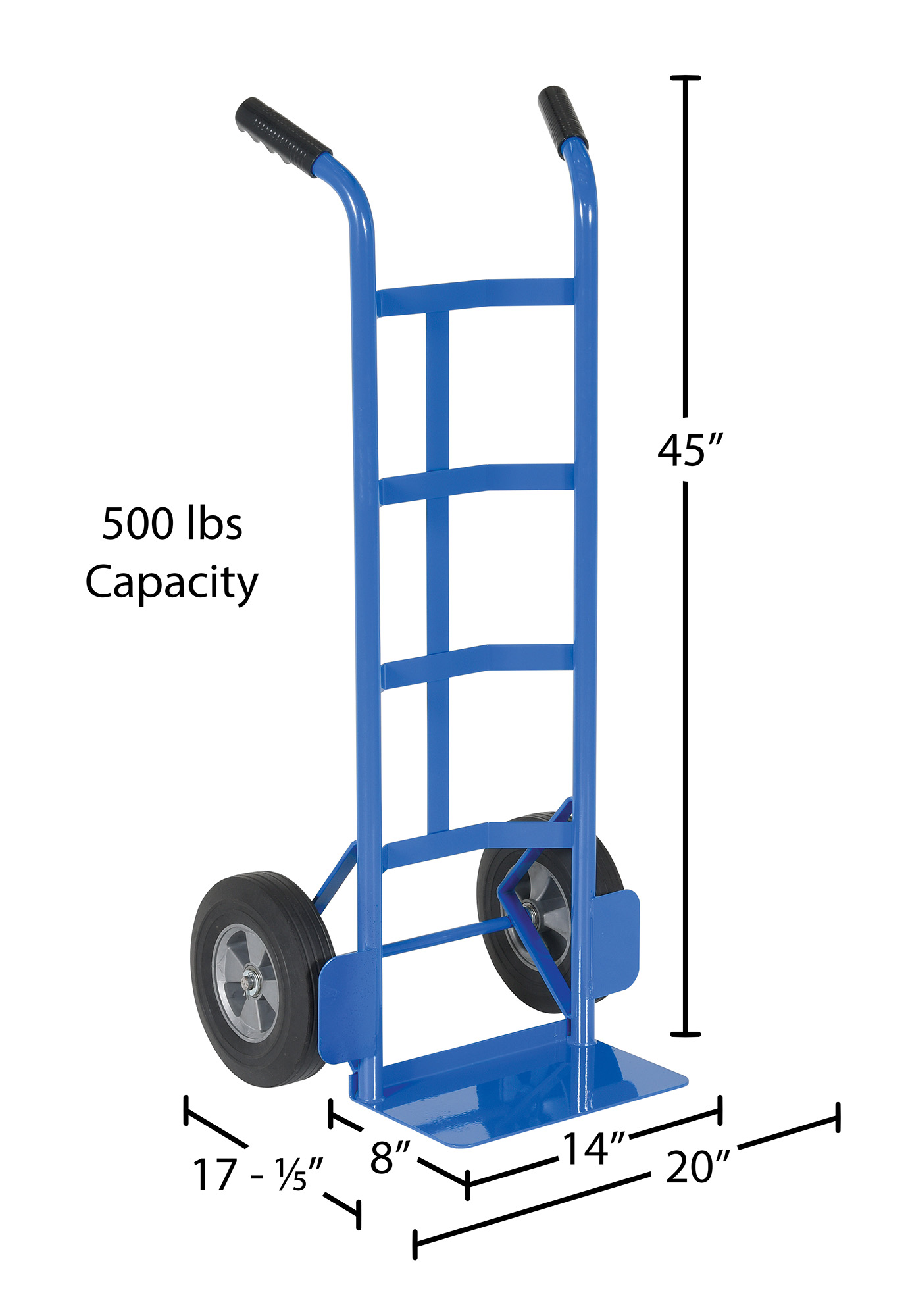 Steel Dual Handle Hand Truck with Hard Rubber Wheels 17-1/2 In. x 21 In. x 44-1/2 In. 500 Lb. Capacity Silver