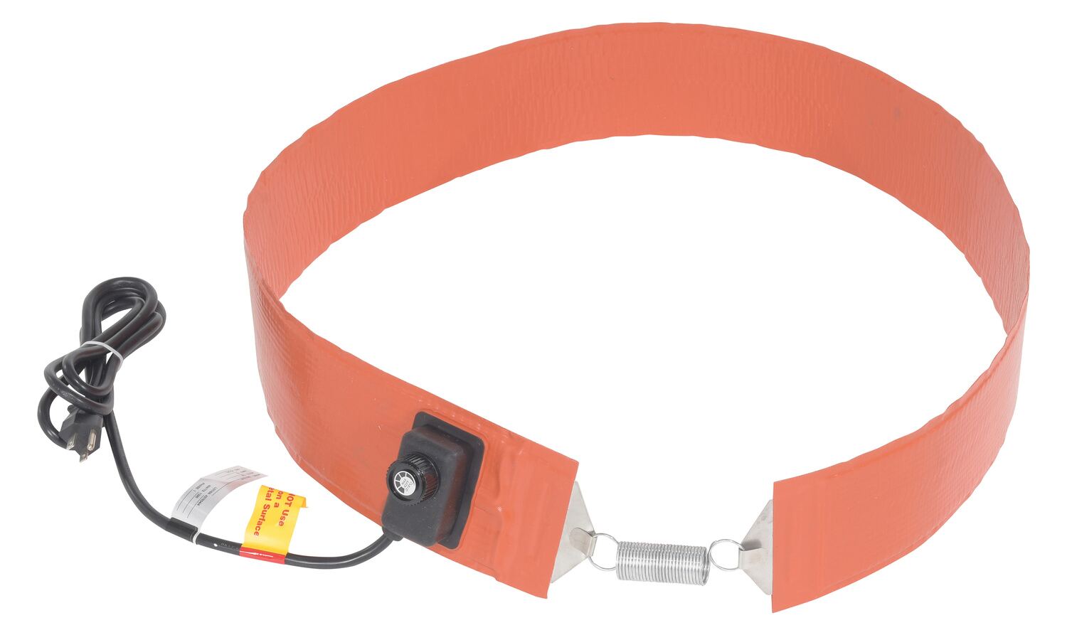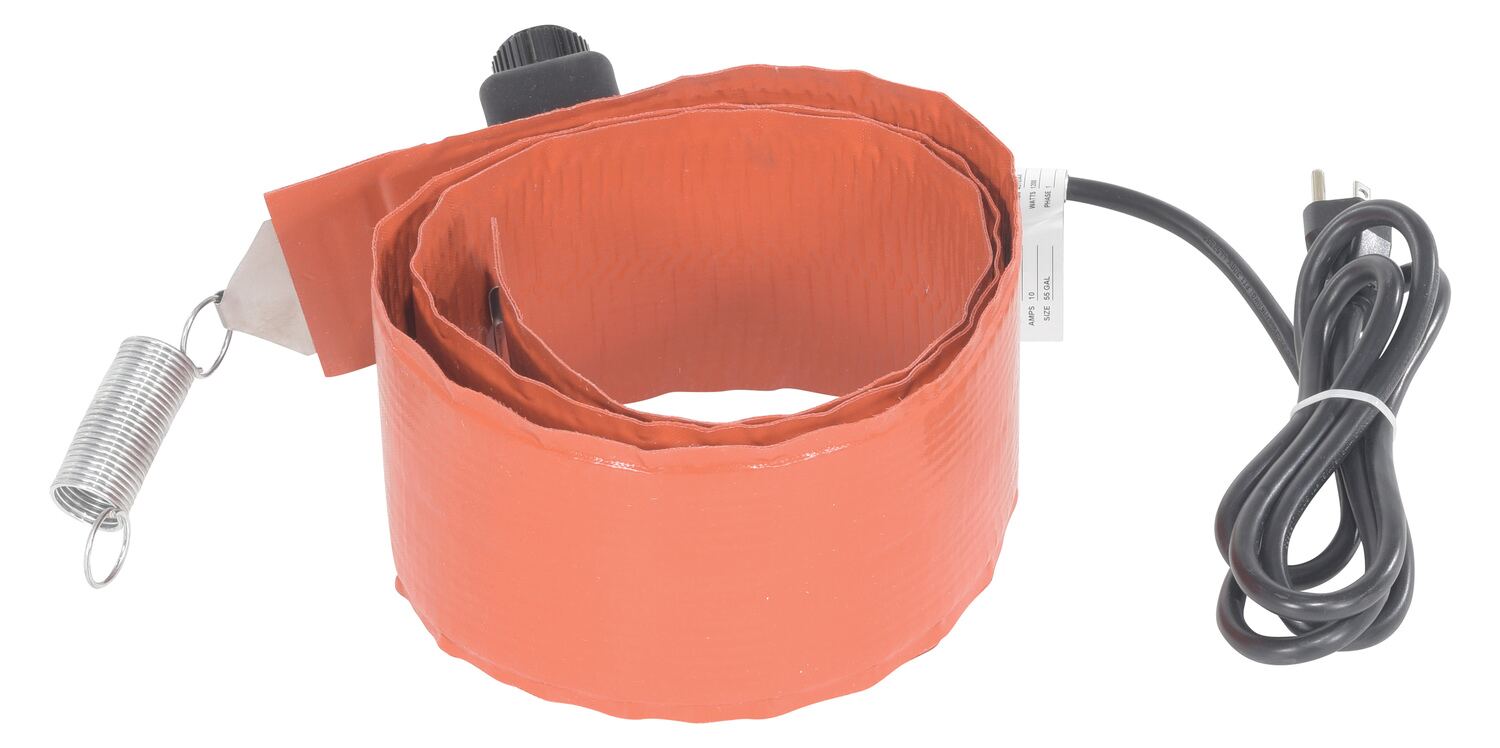 Quickly and efficiently heat-up your steel drums or pails with a drum heater. Solves a wide range of freeze protection, viscosity control, and process temperature applications. Easily adjust thermostat. This extra-wide silicone rubber band heater is moisture and chemical resistant. Multi-stranded grounded heating element provides uniform heat and a long service life. Spring closure can be expanded. Unit comes with a power cord. Recommended for use with GFCI outlets only. Heater is CE approved (not UL listed).