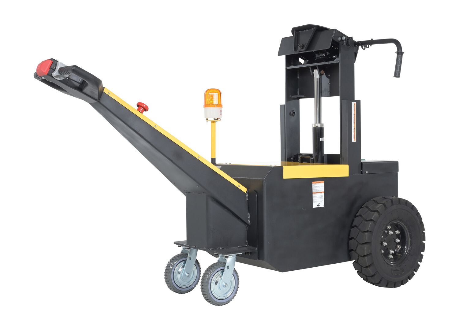 Steel Heavy Duty Electric Powered Tugger With Fifth Wheel Attachment 10,000 Lb. Pulling Capacity YellowAn electric powered heavy duty tugger is suitable for use in airports, hospitals. They can also be used in a variety of applications like pulling industrial carts, hoppers, and trailers; all without the needless extreme stress or strain on your body. Ergonomic handle features easy to operate throttle with forward/reverse speeds and horn. Also included is an electromagnetic disc brake with automatic dead-man feature that activates when the user releases the handle. With the addition of a fifth wheel component the tugger can now maneuver a variety of industrial and recreational equipment.