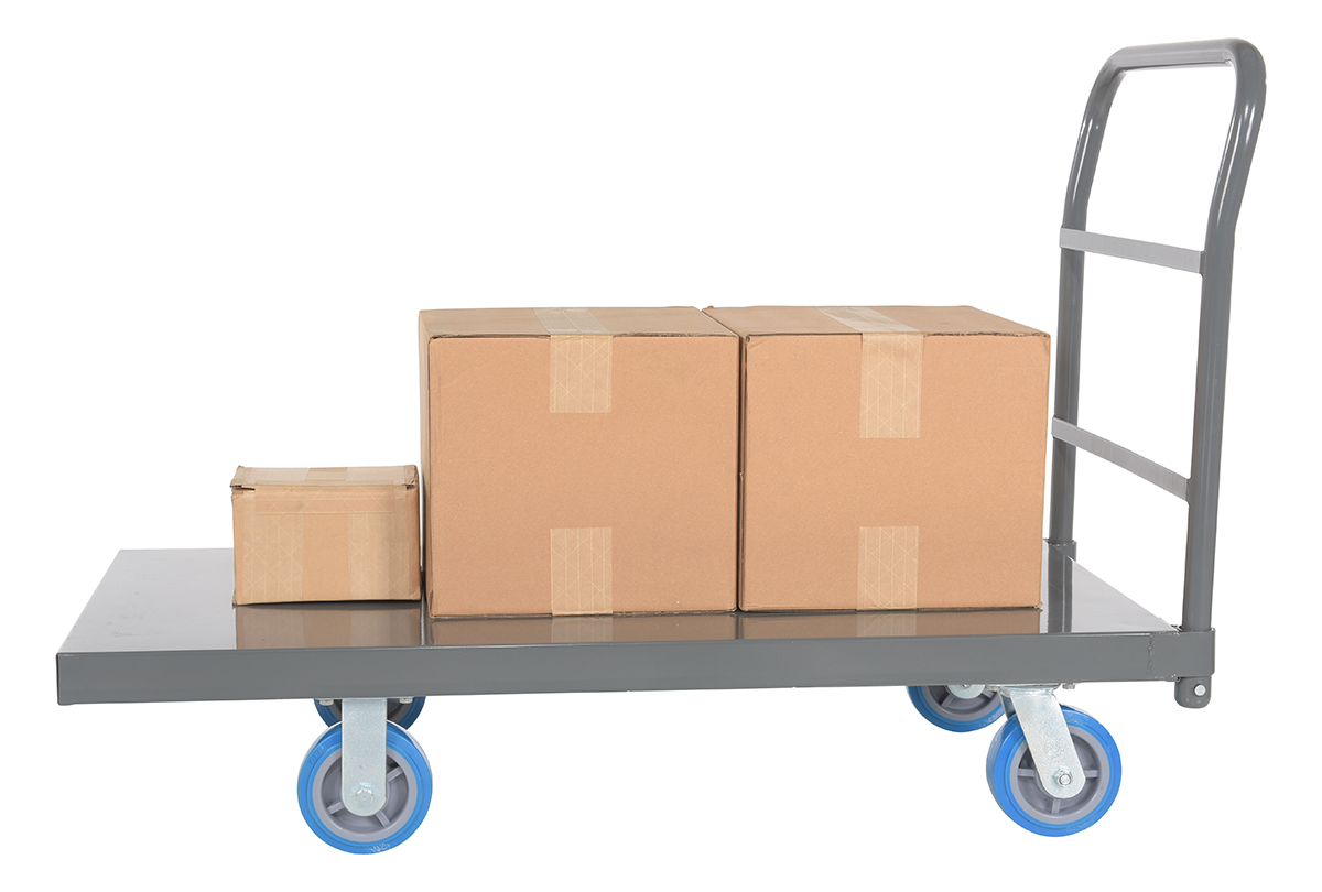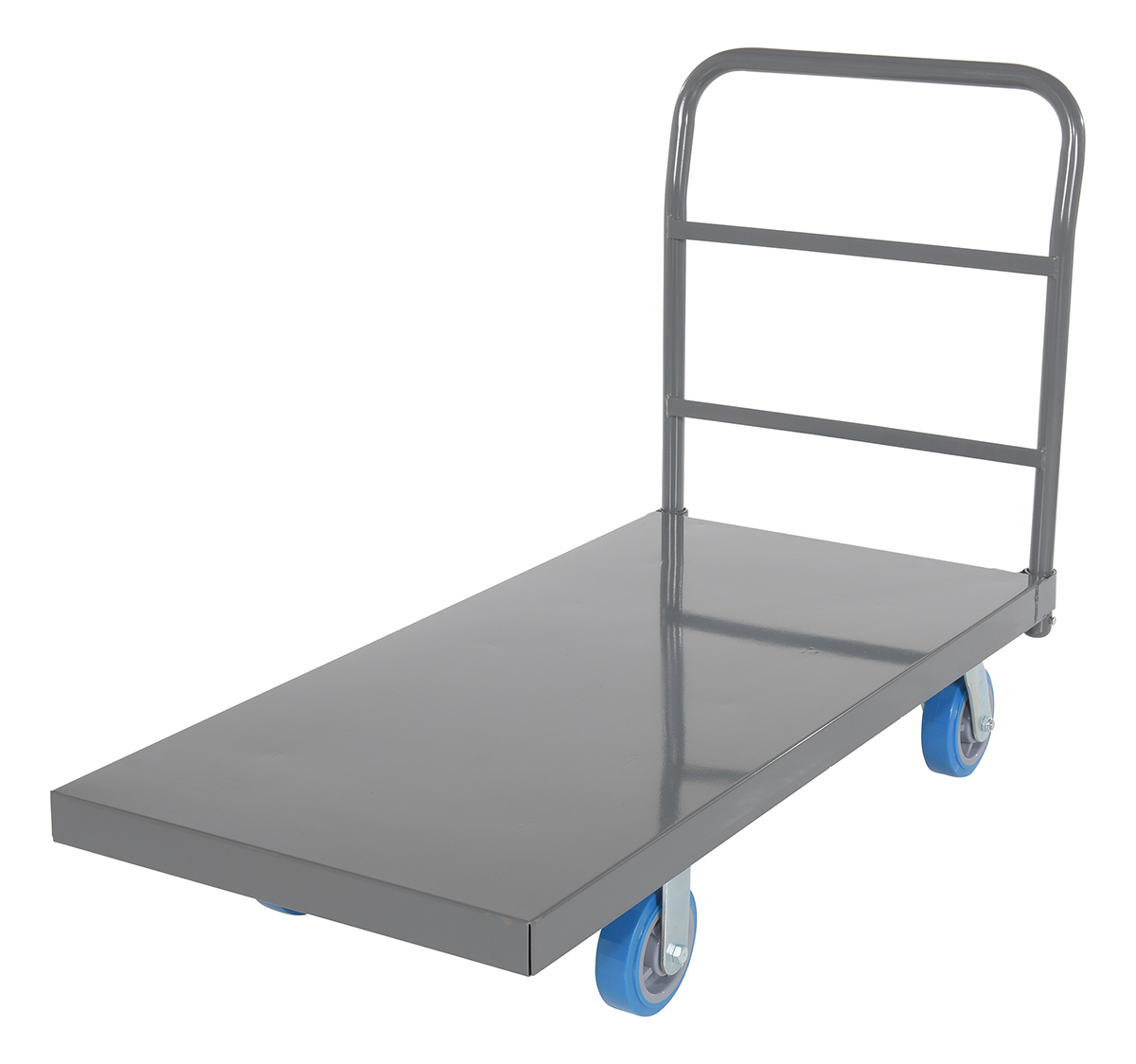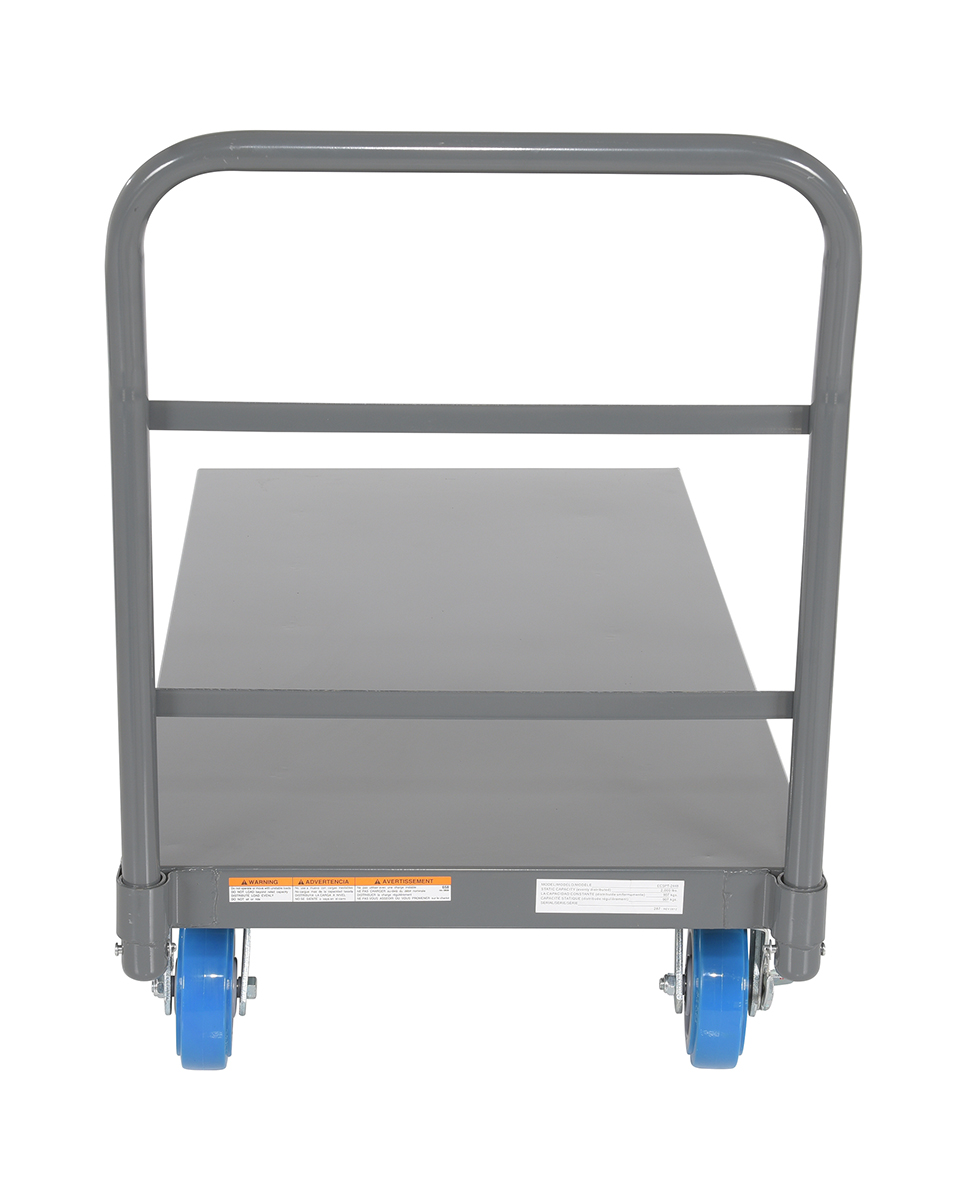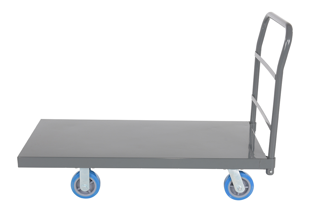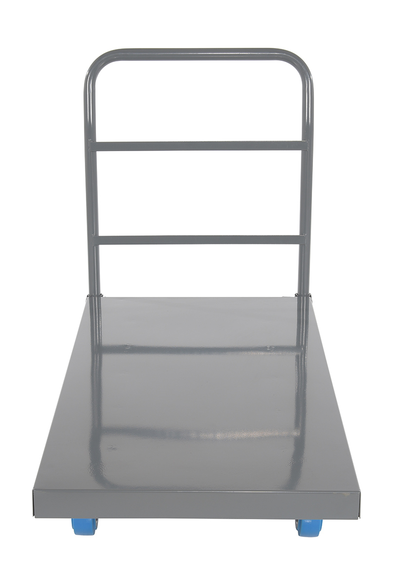 • Platform truck with solid, smooth steel deck is all welded for maximum strength
