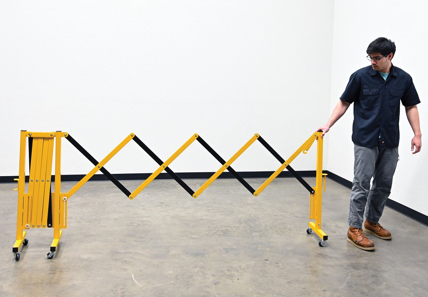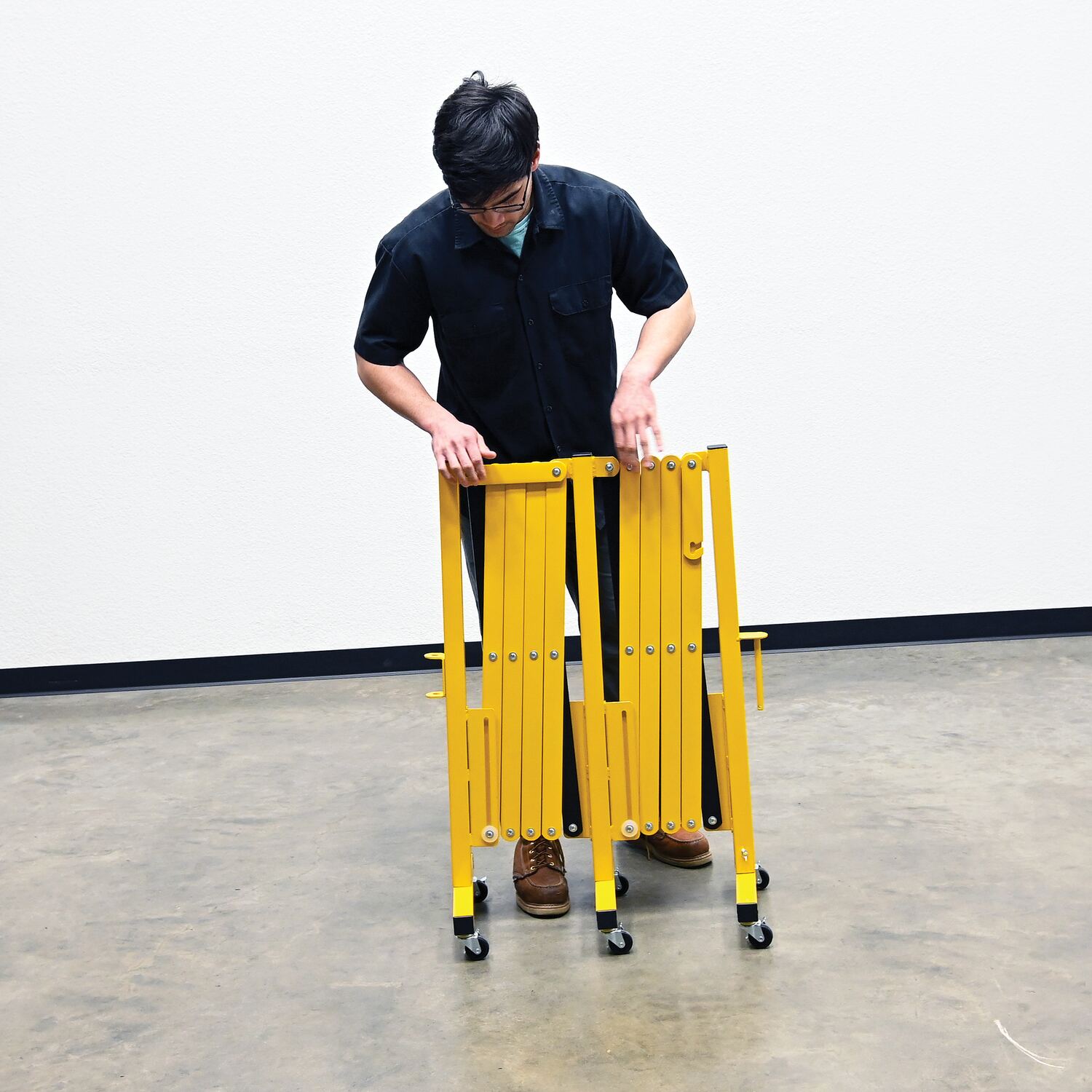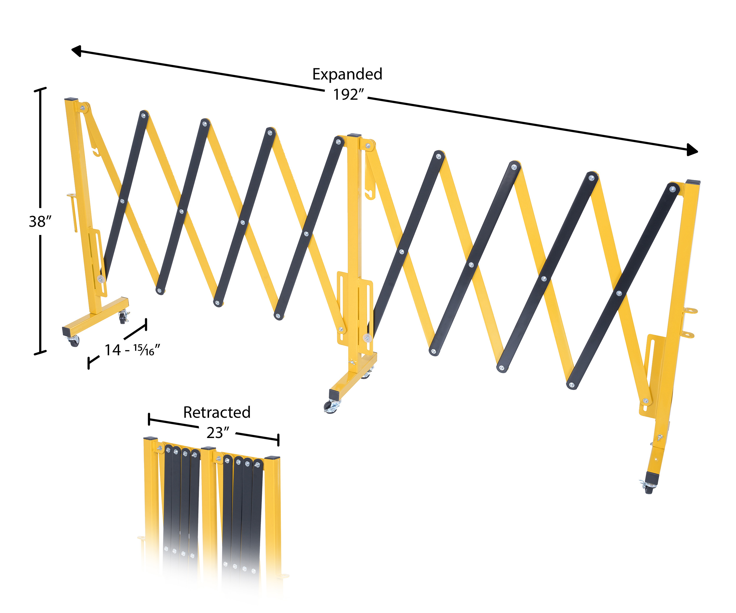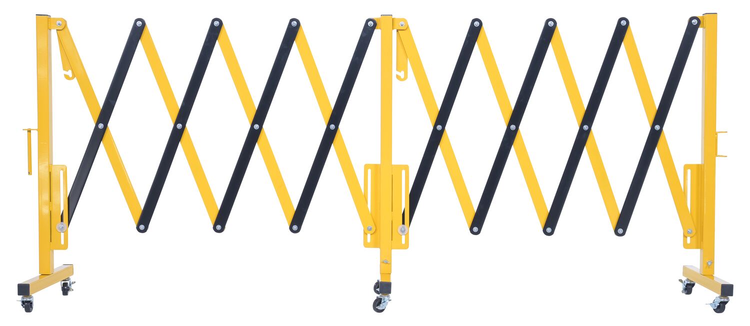 Expand-A-Gate is designed to block areas where restrictions are in place. The scissor design can be expanded to fit a variety of different sized areas, while also being compacted for a small storage footprint. Rolls smoothly on six swivel casters. Powder coat finish for baked in added toughness. Ships knocked down.