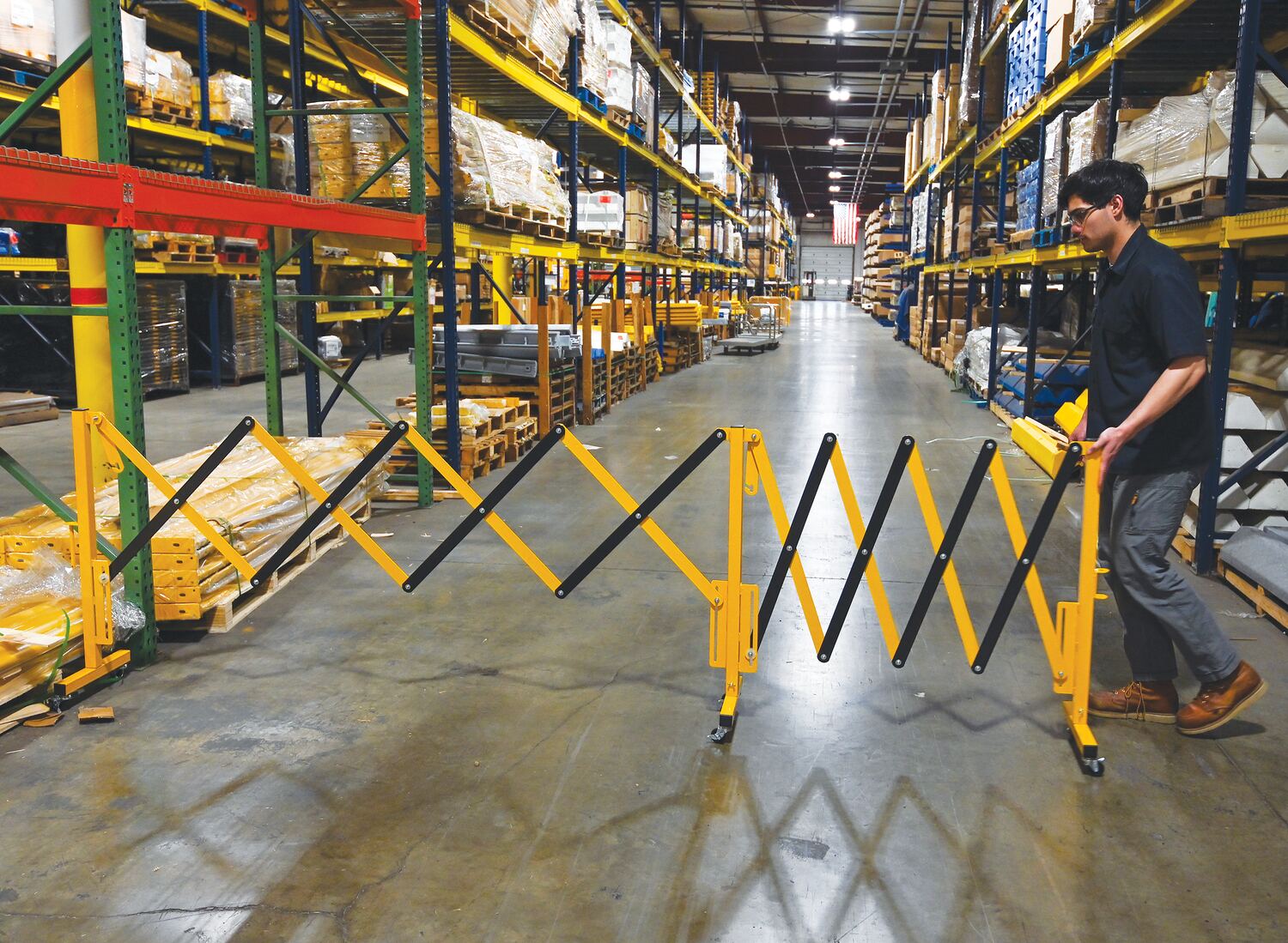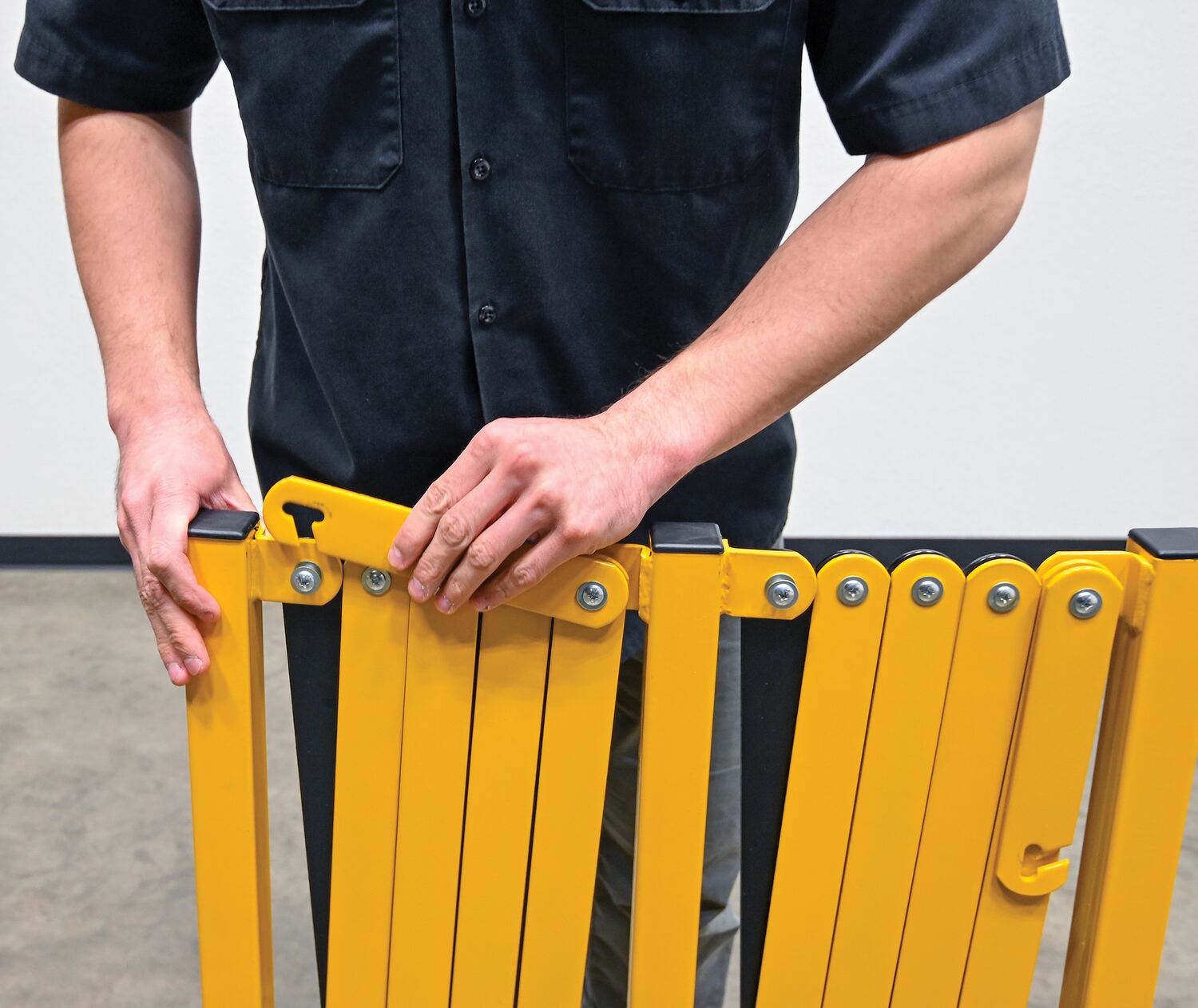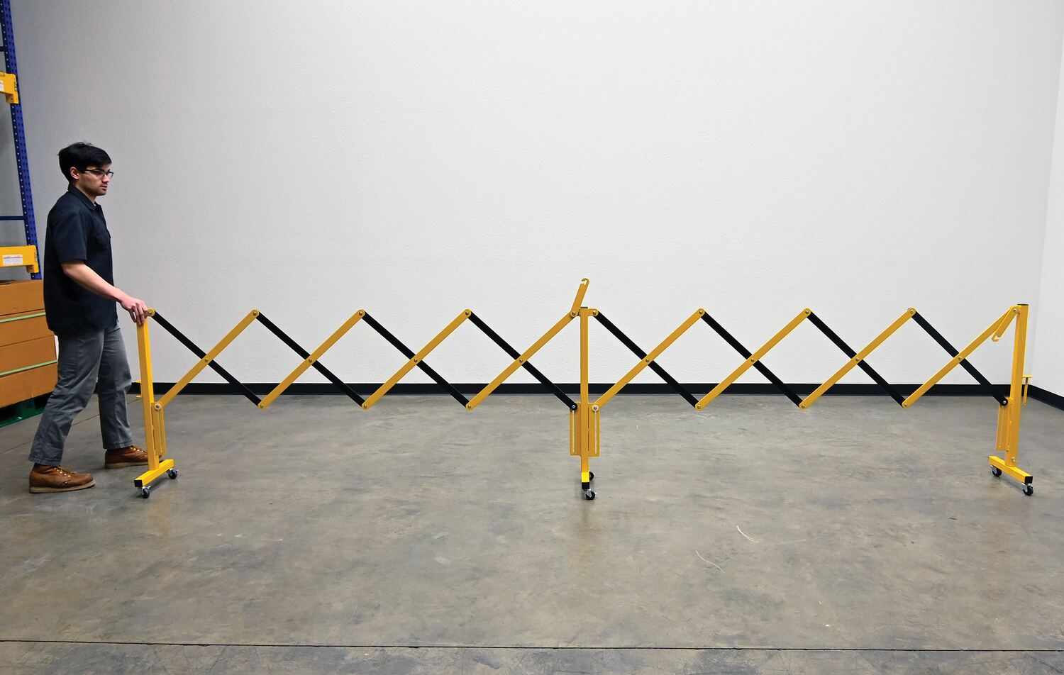 Expand-A-Gate is designed to block areas where restrictions are in place. The scissor design can be expanded to fit a variety of different sized areas, while also being compacted for a small storage footprint. Rolls smoothly on six swivel casters. Powder coat finish for baked in added toughness. Ships knocked down.
