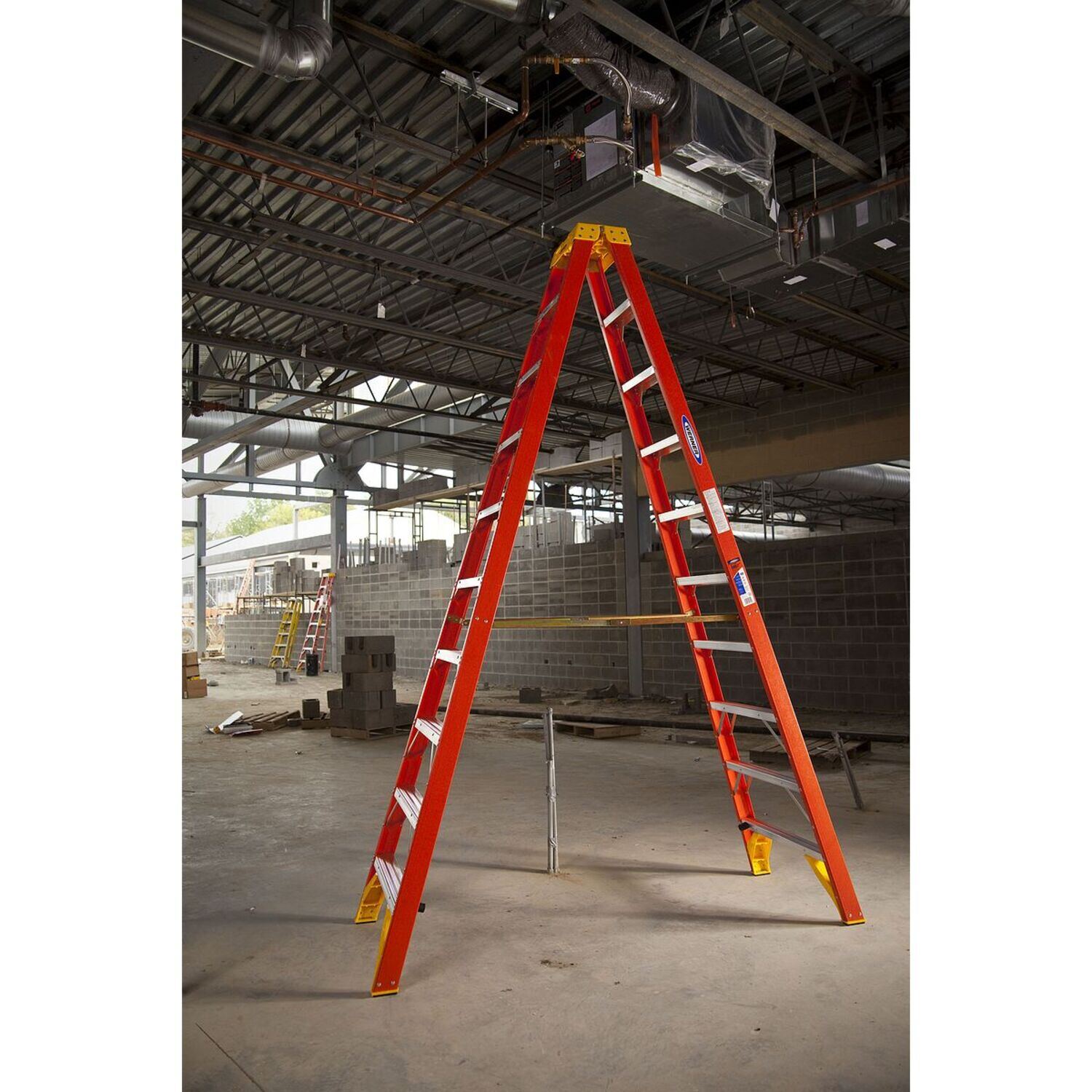 Fiberglass Twin Front Ladder 10 Step 300 Lb. Capacity Orange
