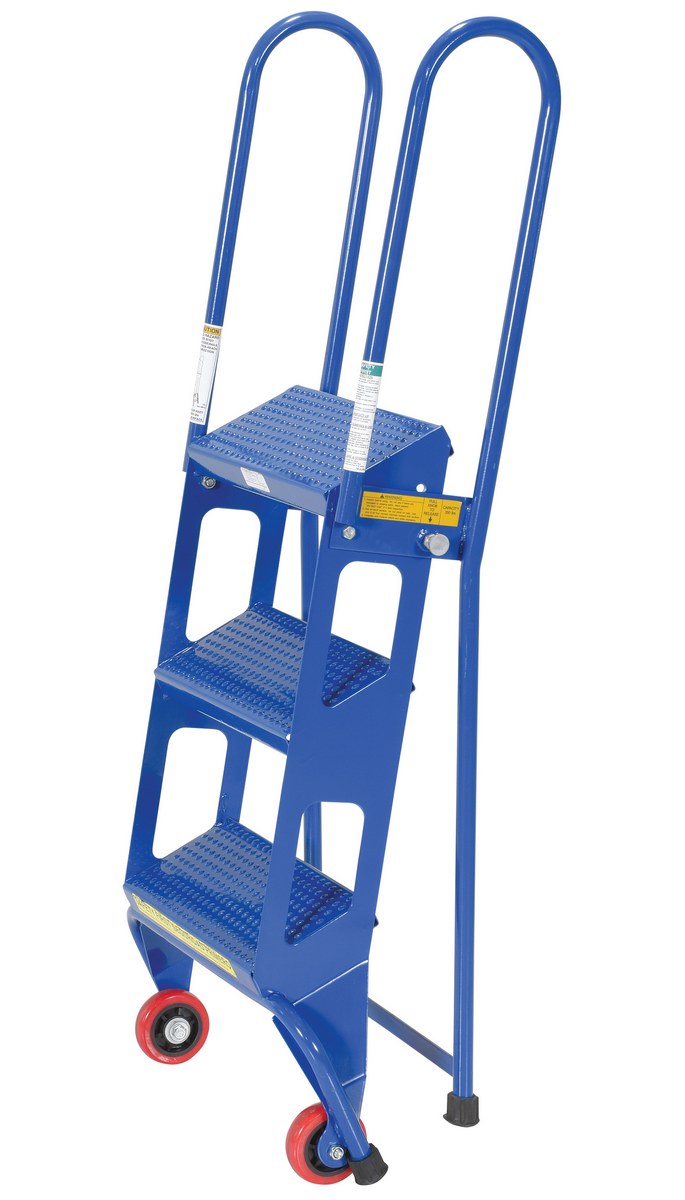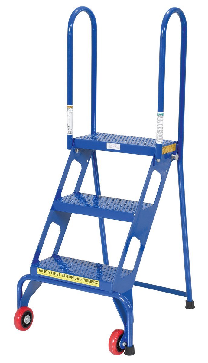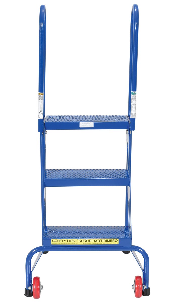 Steel Folding Ladder with Wheels 3 Step 350 Lb. Capacity Blue