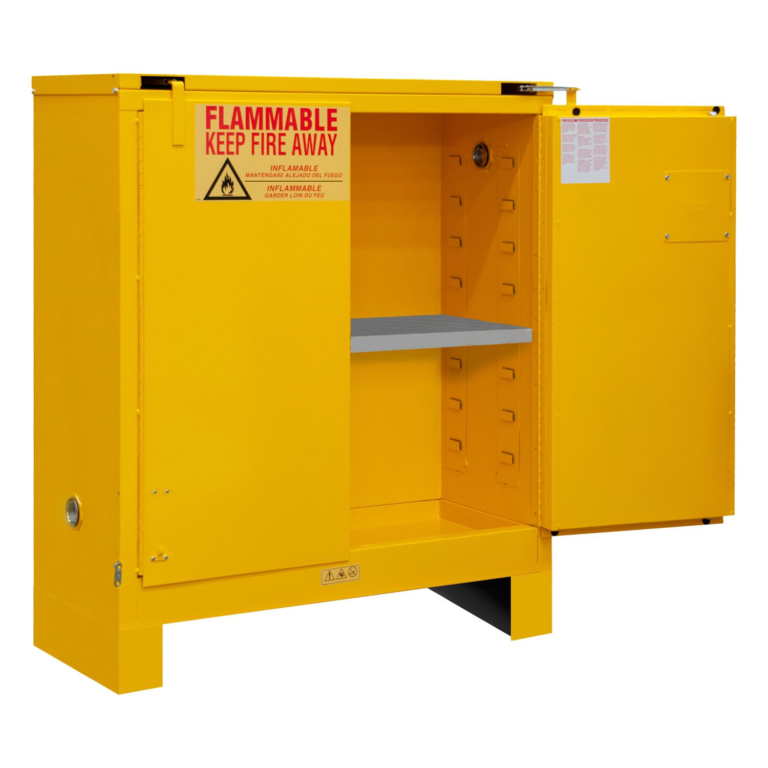 Flammable Self Closing Storage Cabinet With 6 Inch Legs 30 Gallon Capacity Yellow