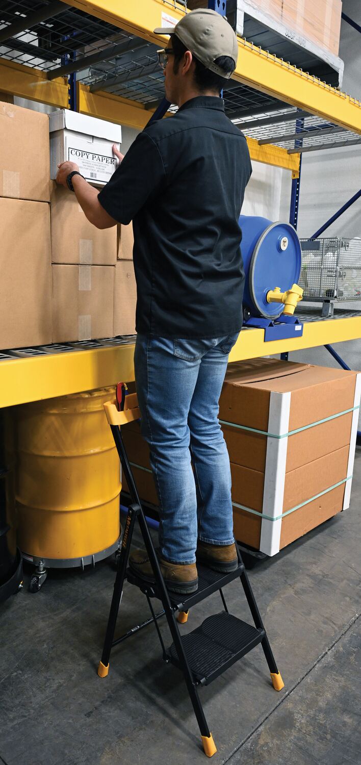 This durable, multipurpose ladder is perfect for homes, offices, schools, and the industrial warehouse. The compact design can quickly be turned from a standard step stool into a flat profile, making it perfect for storage and on the go. Never to be overlooked, with safety always being the number one priority, the anti-slip platforms help provide a secure climb and descent from the step stool.