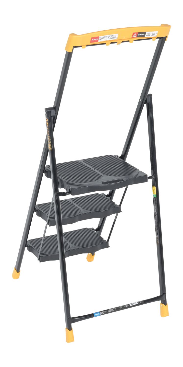 Steel Pro Step Stool 3 Step 250 Lb. Capacity BlackThis durable, multipurpose ladder is perfect for homes, offices, schools, and the industrial warehouse. The compact design can quickly be turned from a standard step stool into a flat profile, making it perfect for storage and on the go. Never to be overlooked, with safety always being the number one priority, the anti-slip platforms help provide a secure climb and descent from the step stool.