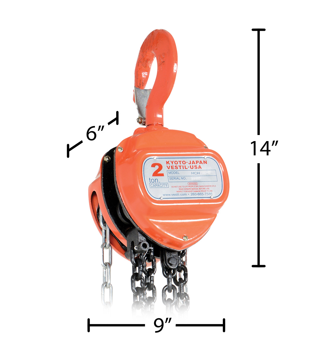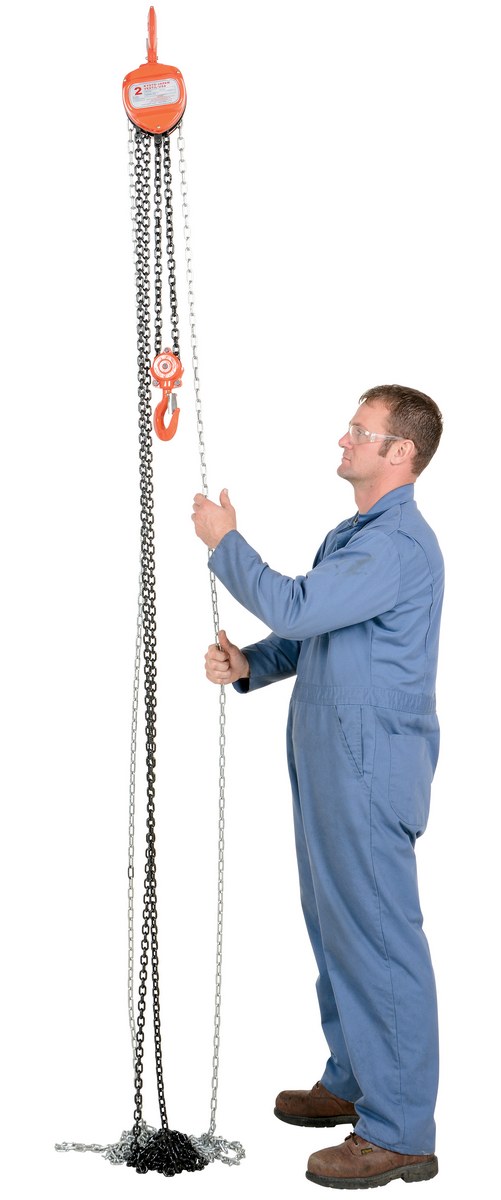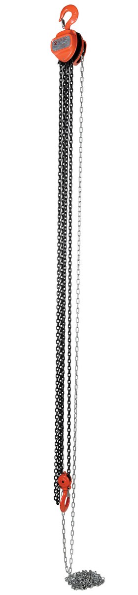 This portable, lightweight hand Chain Hoist is durable and easy to operate. Compact design and low headroom allow installation in confined areas. Enclosed double ratchet pawls with self adjusting disc brake standard. Designed with a safety factory four (4) times rated capacity. Individually tested at 150% rated capacity. Features black chain tempered to ISO 3077, pull chain, hardened two-stage gears and forged steel upper and lower hooks with safety latches. Constructed of high quality steel components ideal for industrial applications.