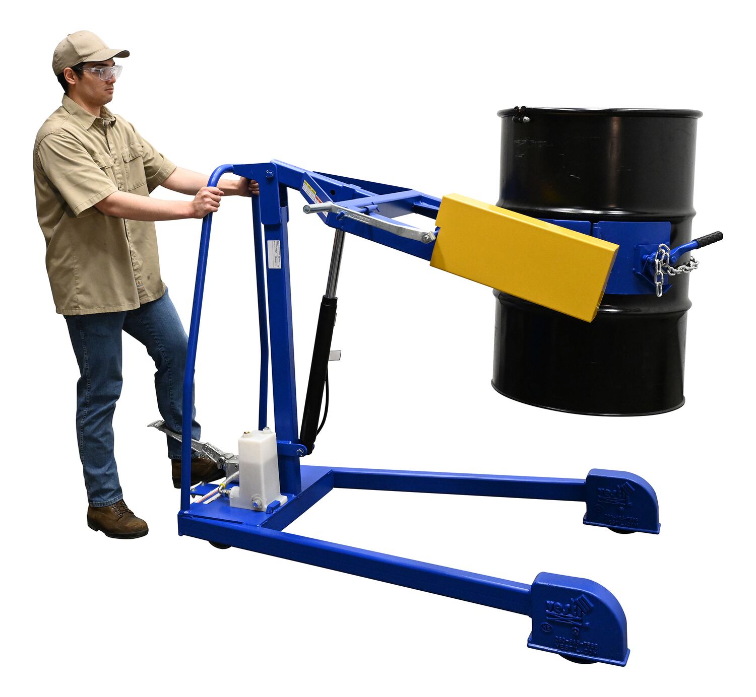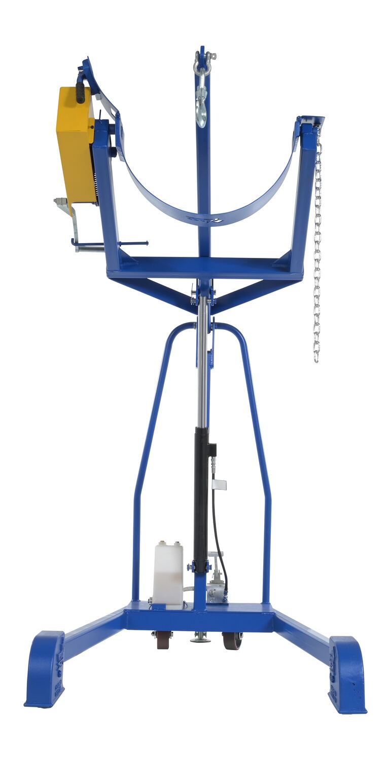 Steel Portable Hydraulic Drum Carrier, Rotator and Boom 59-11/16 In. Lift Height 800 Lb. Capacity Blue / Yellow