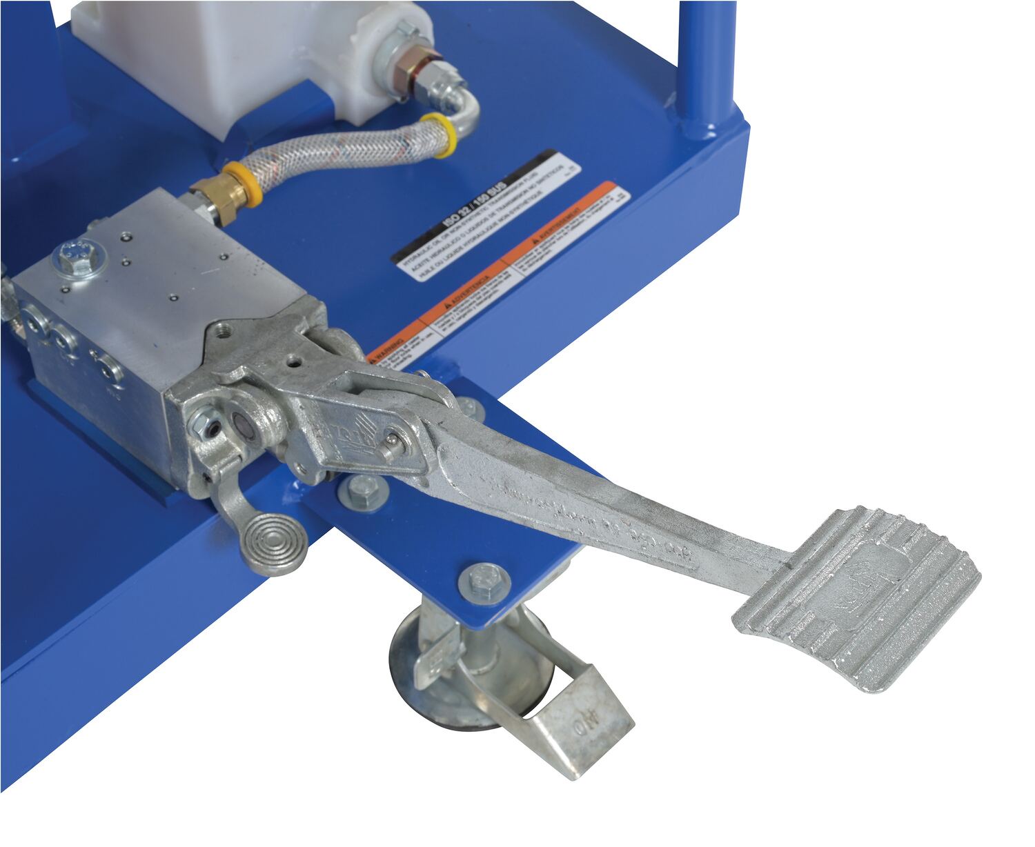 The portable Hydraulic drum carrier/rotator/boom allows one person to lift, transport, and dispense fully loaded steel drums with ease. It features a manual foot pump hydraulic lift and rolls on casters and wheels. The hand crank rotates the drum. This unit features a lifting boom attachment which stores on the outriggers.