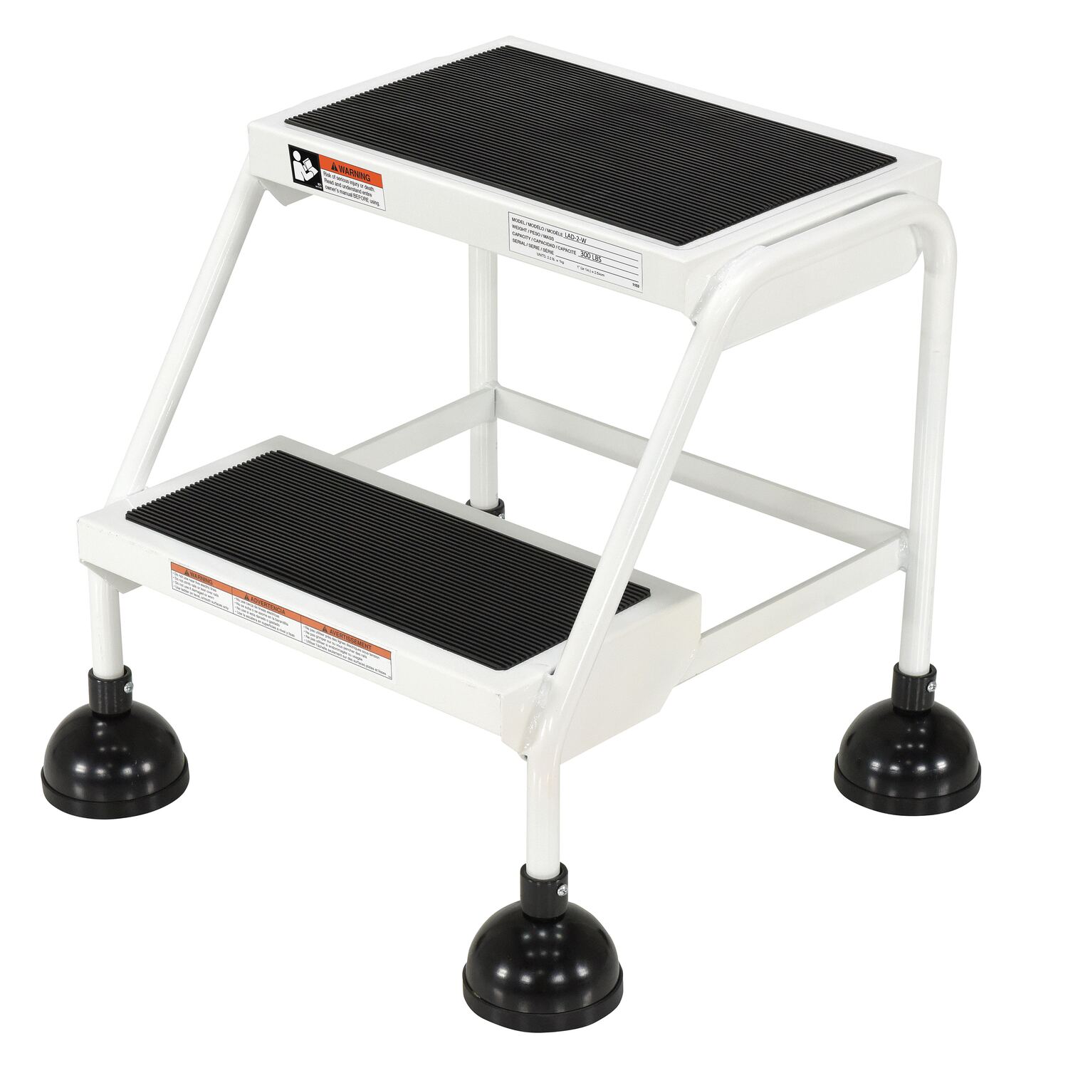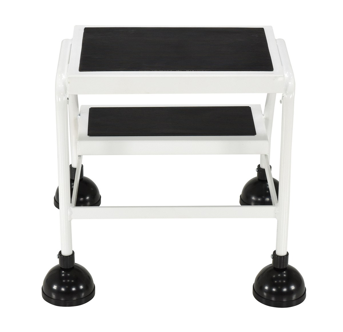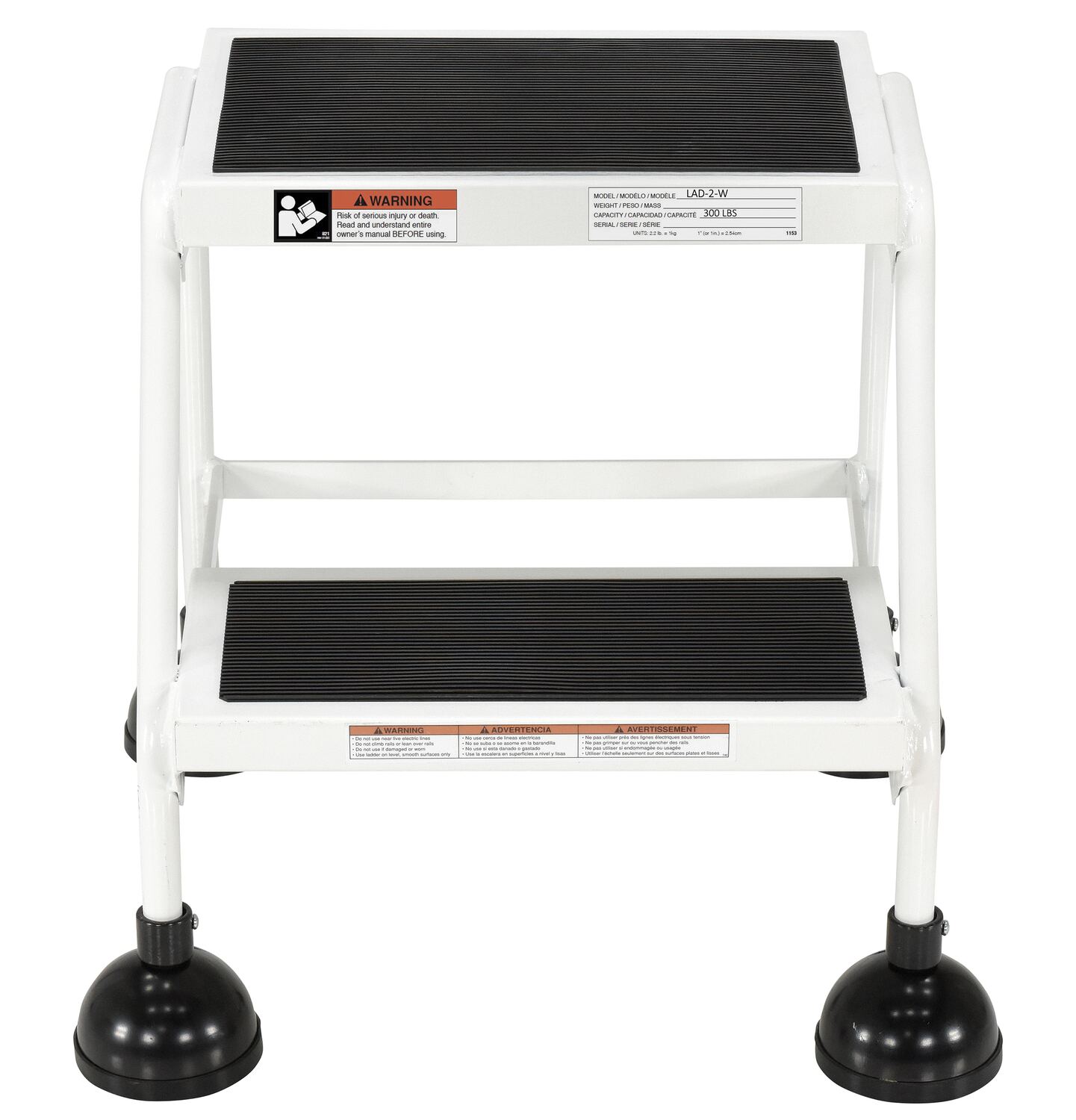 Steel Commercial Spring Loaded Ladder 2 Steps 16 In. Wide 58 Degree with Anti-Slip Rubber Mats 300 Lb. Capacity White
