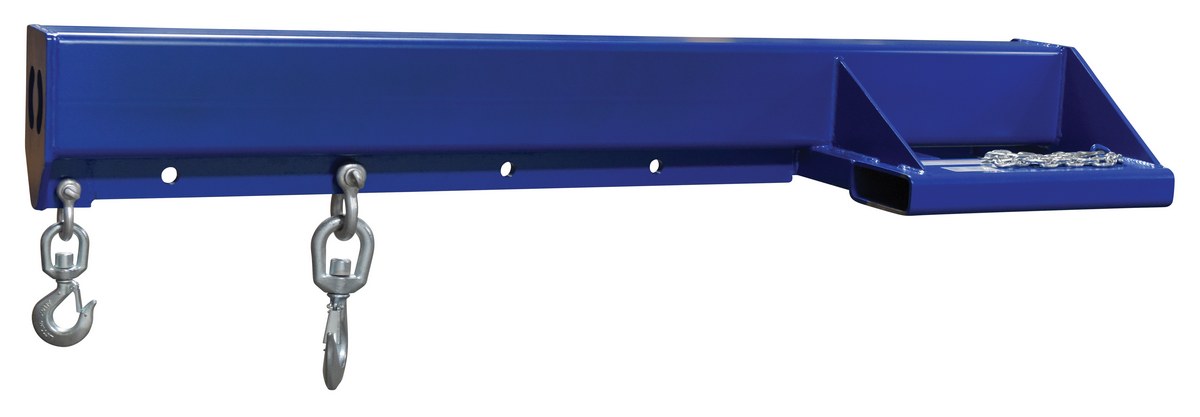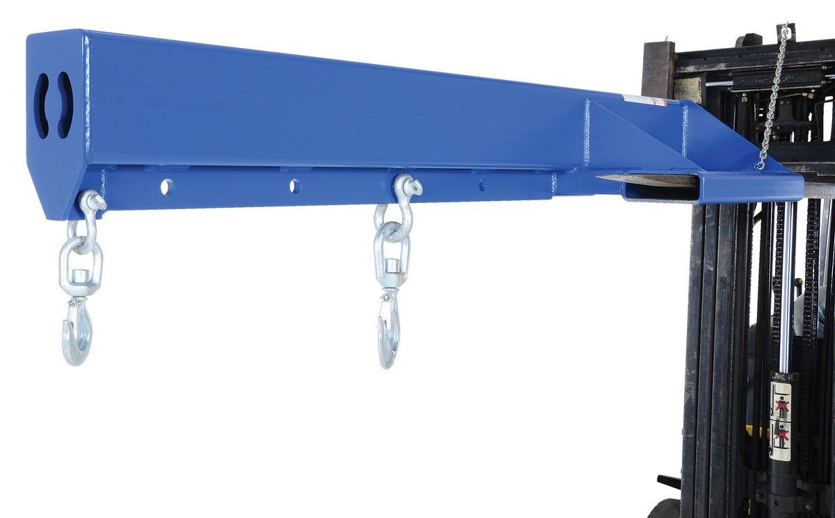 Unique performance, convenience, and safety features are built into every lift master boom. Fabricated from structural steel with welding to meet AWS creates a rugged and durable boom that will provide long term service. A safety restraint secures the boom to the fork truck for safe operation. Includes two (2) lifting hooks.