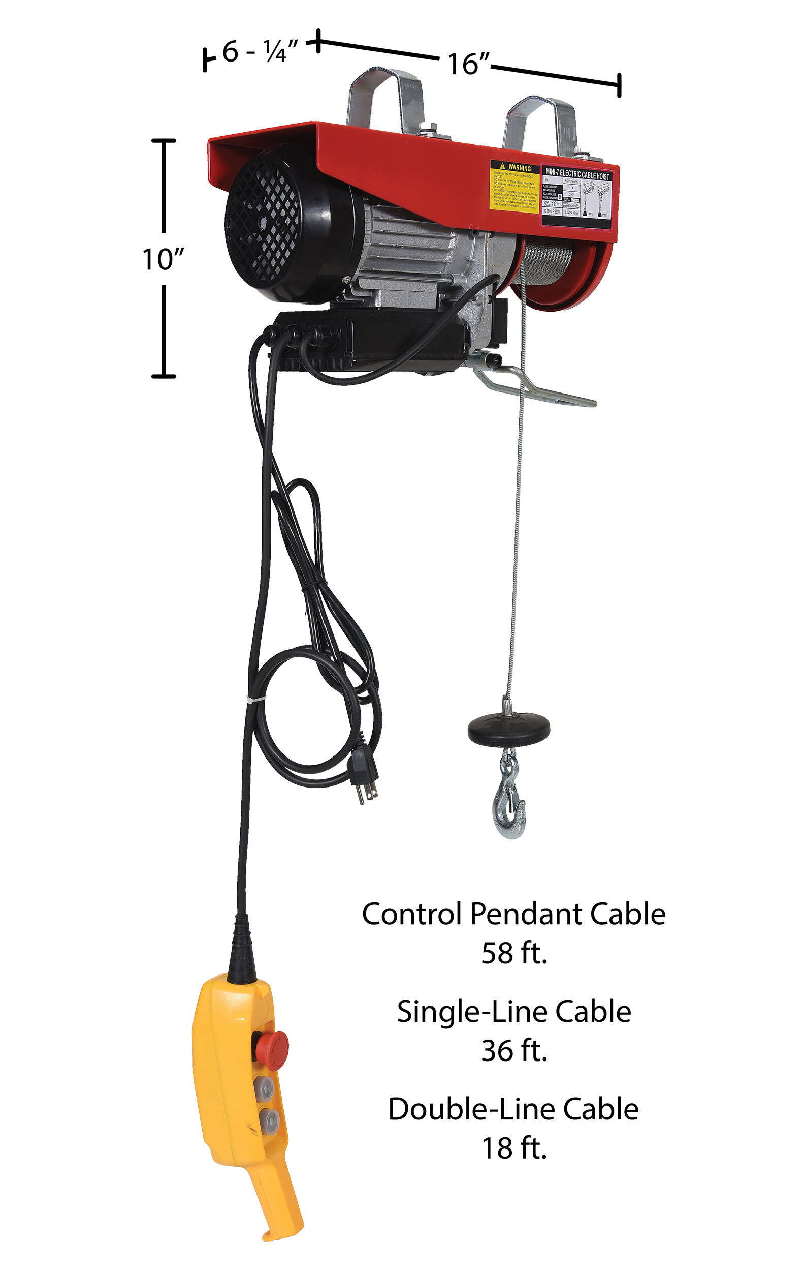 Steel Mini Cable Hoist Option 16 In. x 6-1/4 In. x 10 In. 750 Lb. Capacity Red