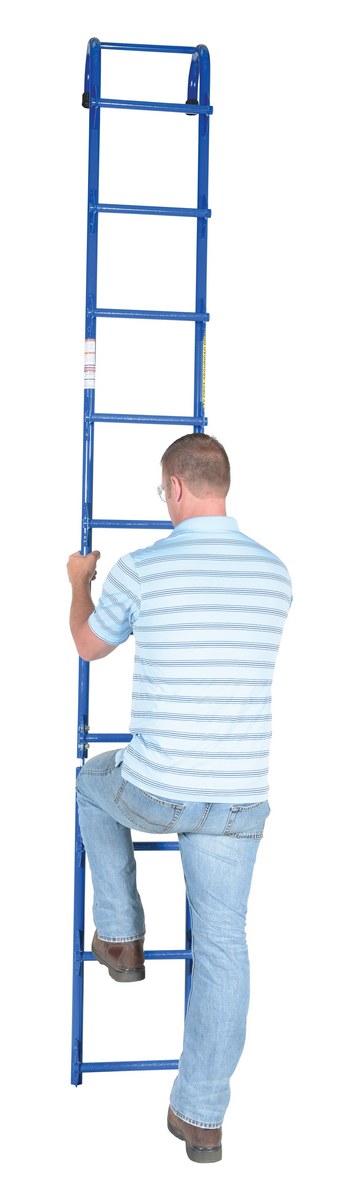 Steel Tank Access Ladder 10 Ft. 300 Lb. Capacity BlueThe natal tank access ladder has a unique modular design for inspecting storage tanks. The rungs are offset to protect knuckles and are made from non-slip steel material. This ladder has a durable welded steel construction and a blue powder coat finish.