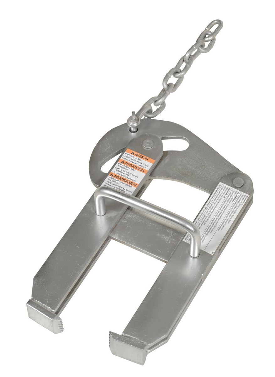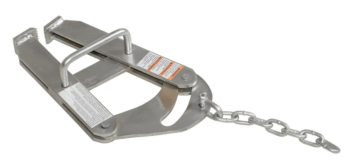 The pallet puller is used to pull pallets to rear of trailers for easy fork truck access. Made of rugged steel construction. Heads are self-cleaning and unaffected by wood particles, paint or grease. The cam closing action provides maximum gripping strength and reduces pinch points. Safety handle enables easier positioning and removal. Grips both metal and wood pallets with biting action. The pallet puller is not designed for lifting.