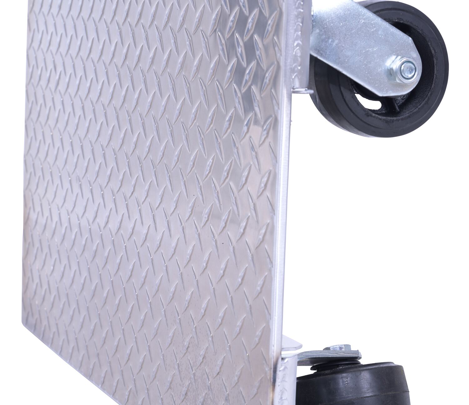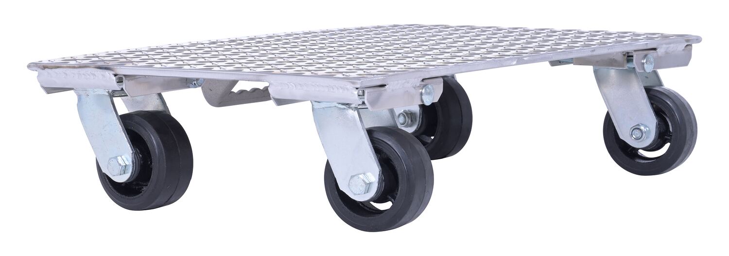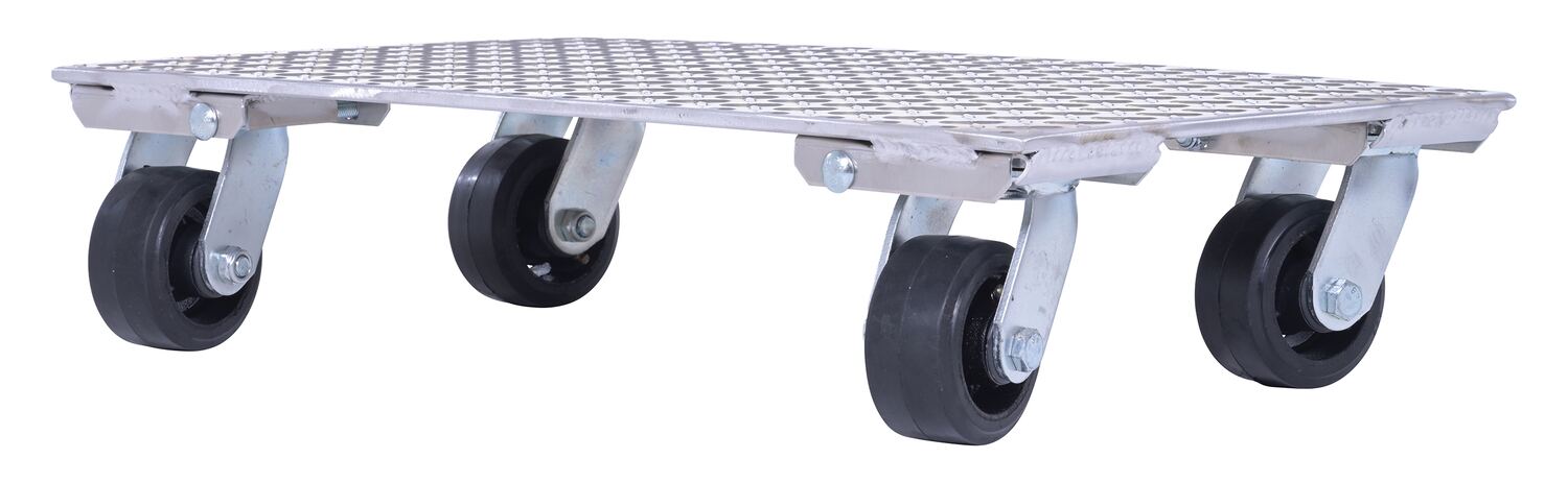 The Aluminum plate dolly is manufactured from heavy-duty raised diamond tread plate for strength and extra grip.