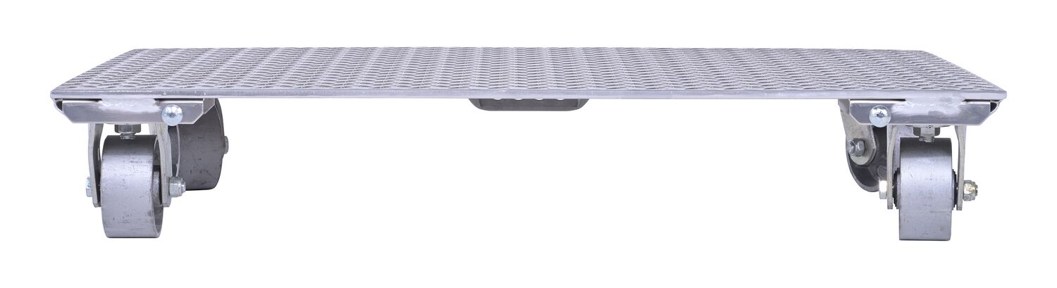The Aluminum plate dolly is manufactured from heavy-duty raised diamond tread plate for strength and extra grip. Carrying handle is located on bottom side of one end.