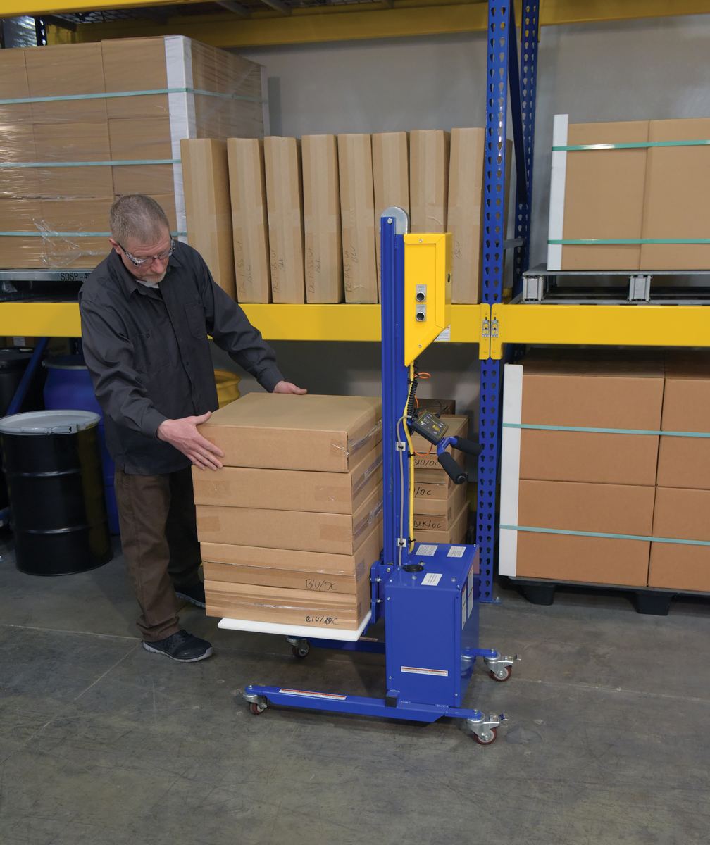 Powered quick lift units transport and position loads quickly and efficiently. Featuring a low profile design with dual push handles for maneuvering in narrow aisles and confined spaces. The auto height indexer lets the platform be unadjusted to the most suitable height. When unloading many boxes, as one box is taken off of the platform, the height of the platform automatically re-adjusts back to the set proper height. This minimizes bending and keeps the user in a more ergonomic position throughout the process. Unit is powder coated for baked in added toughness.
