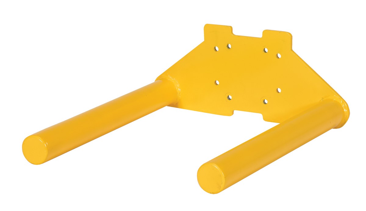 The double spindle attachment is designed of a strong construction for lifting rolls of material and other hollow cylinder objects. A simple installation allows the user to obtain immediate use and diminishes the grind of bending and lifting heavy objects. A bright yellow finish promotes safety and visibility while transferring units.