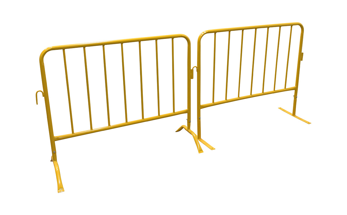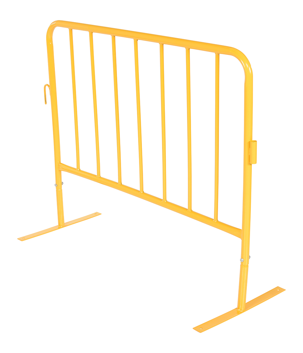Steel Crowd Control Interlocking Barrier with Flat Feet 47-1/2 In. Length YellowThe Heavy Duty crowd control interlocking barrier is attractive and the functional design is ideal for directing personnel. Interlocking portable railing has many commercial and industrial applications. Upright bars are vertically spaced. Each railing includes connectors to attach multiple units together to form long runs. Units are easy to move to meet changing needs. Barriers have flat and compact design to minimize storage space when not in use.