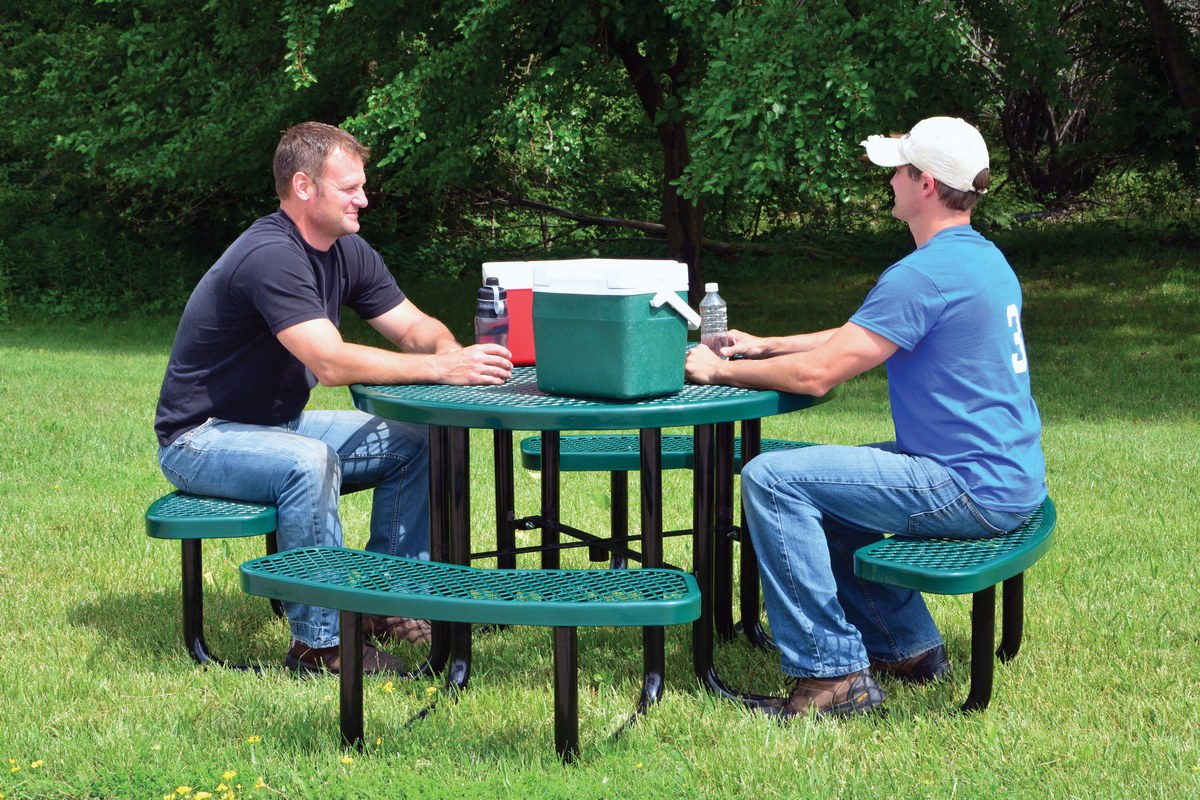 Steel Picnic Table Expanded Metal Round Top 46 In. x 46 In. Green