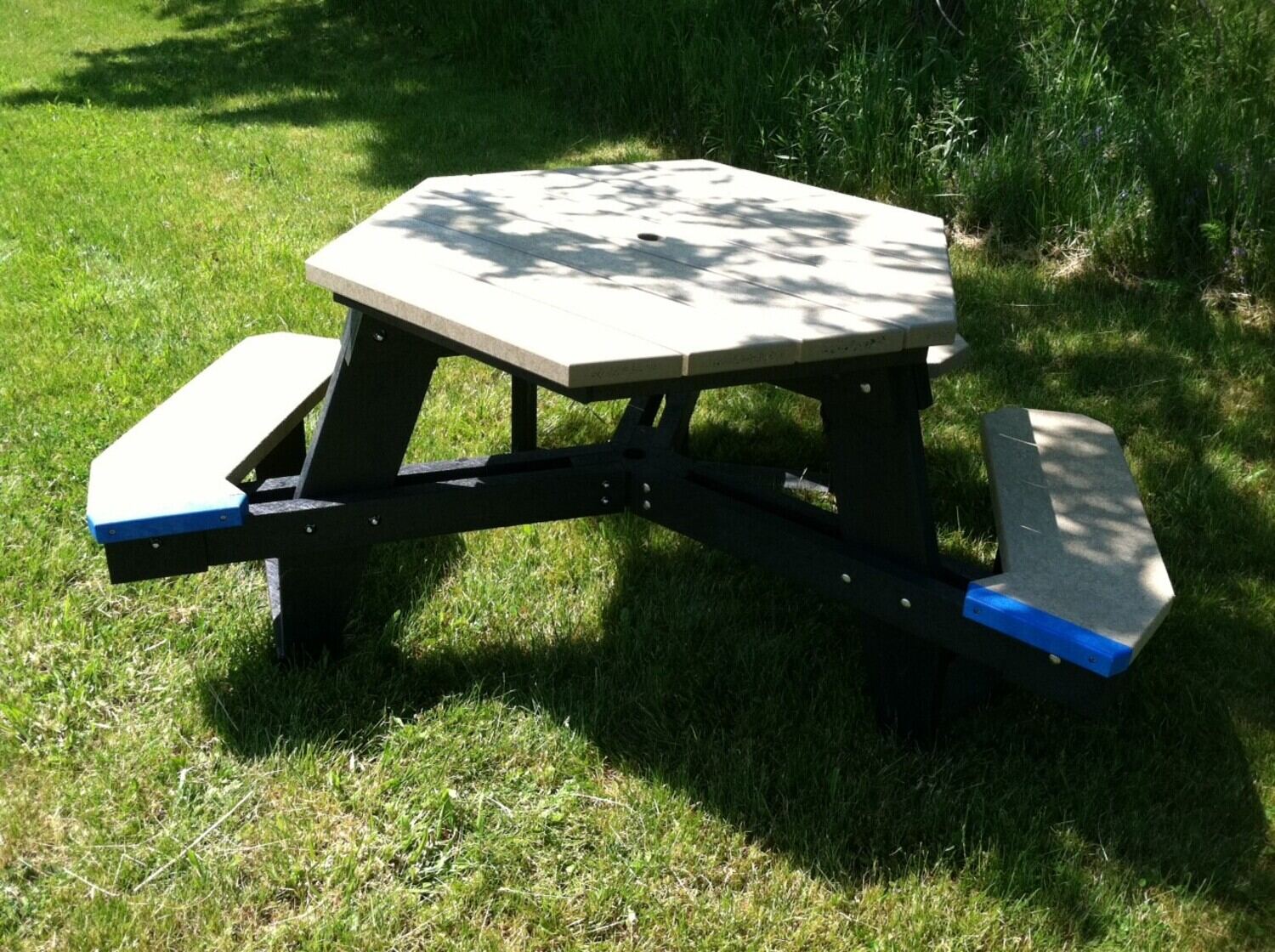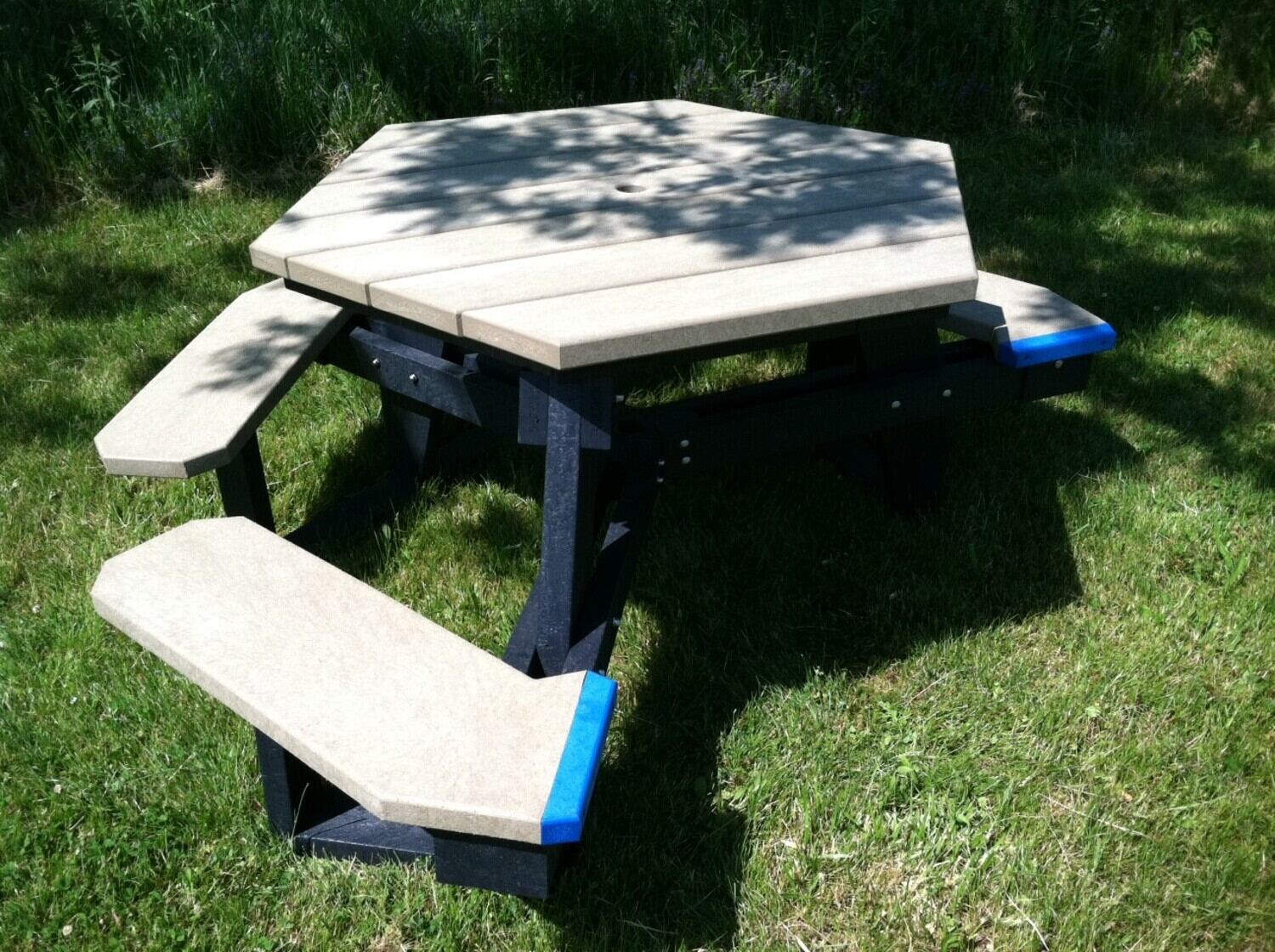 Recycled Plastic Picnic Table Hexagon ADA 39 In. x 44 In. 2000 Lb. Capacity Black Leg Cedar Top