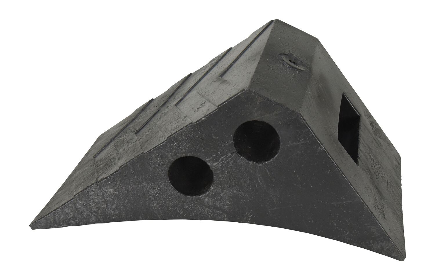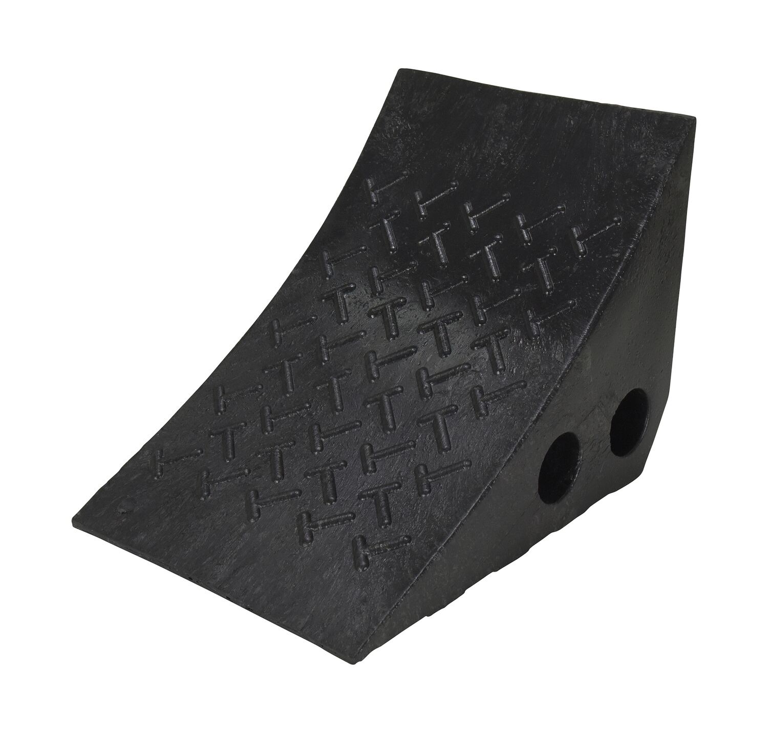 Recycled Polypropylene Plastic Wheel Chock 10-1/4 In. x 7-1/2 In. x 7-1/2 In. BlackThe recycled plastic Wheel Chock is durable yet light enough to take along when you travel. Made of one-hundred (100) percent recycled plastic. Resistant to damage from sunlight, oil, salt and chemicals.