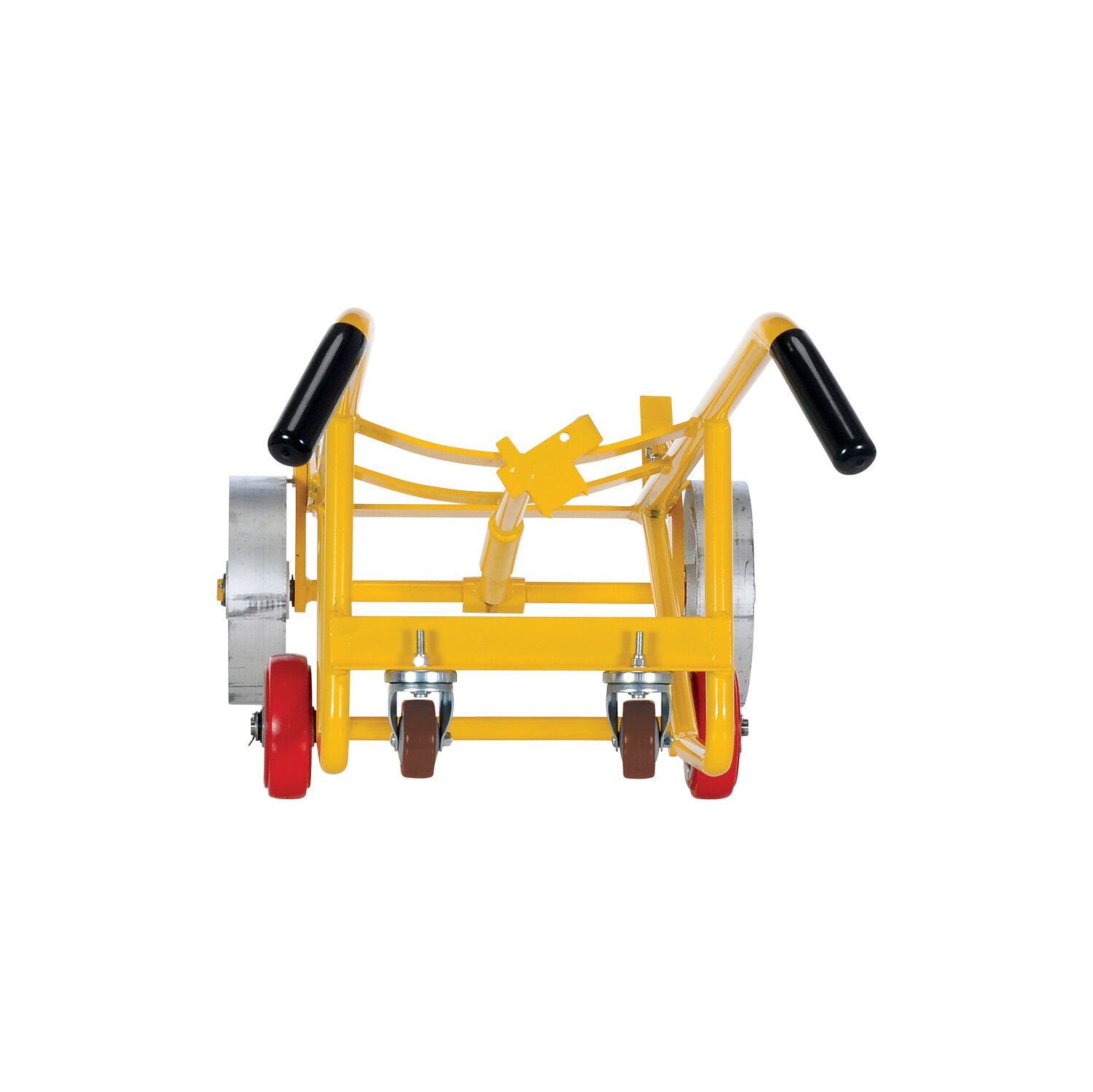 Steel Drum Truck Cradle With Semi-Steel Wheels 20-1/16 In. x 23-11/16 In. x 60-5/8 In. 1000 Lb. Capacity YellowThis multi-purpose drum truck/cradle is one of the most versatile drum trucks in the industry. This innovative product allows the operator to easily tip back the truck in order to transport drums ergonomically on four (4) wheels. Unit doubles as a drum cradle for storage and dispensing all in one. This unique design also allows the operator to place drums and retrieve off of a pallet. Standard with a wheeled undercarriage that positions the drum horizontally for drainage or storage. An integral self-storing bung wrench is standard. This attractive feature not only opens numerous drums, but helps to keep the drum snug on the truck. Powder coat finish.