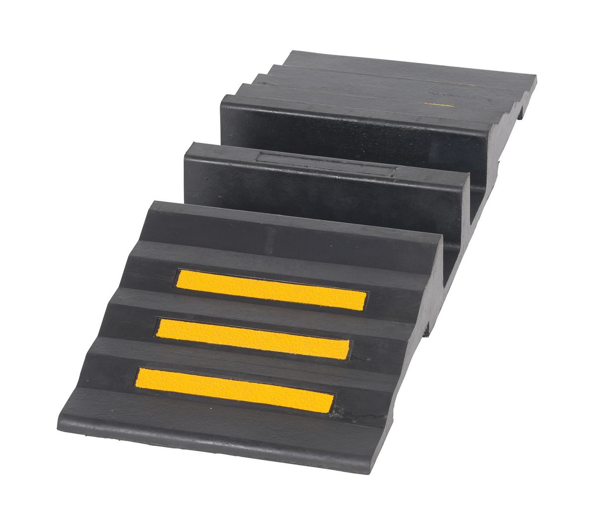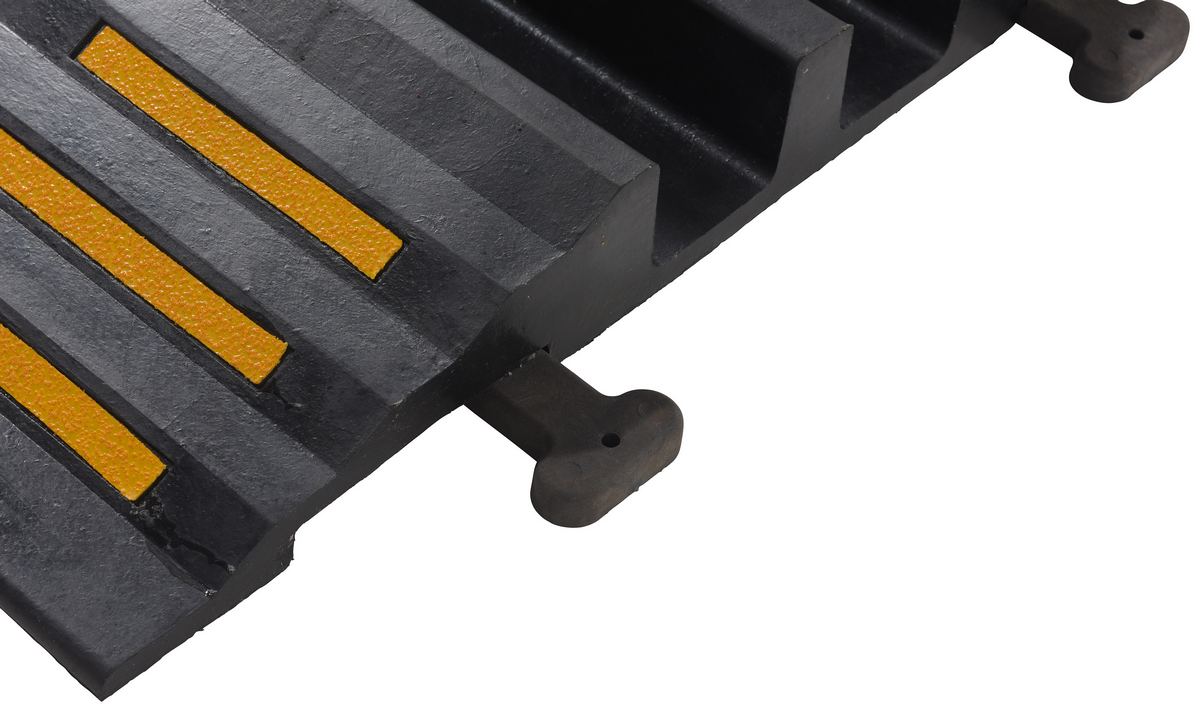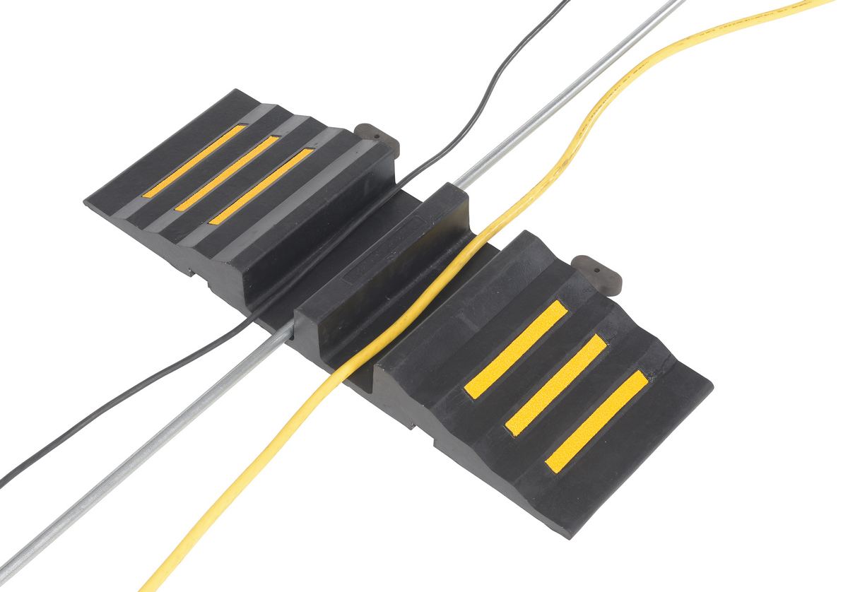 The molded rubber hose and cable Crossover is designed to protect cables and hoses from pedestrian and rolling traffic. The top surface of each crossover includes serrations for extra traction. Optional connectors may be used to interlock individual units together to form wider crossovers. Simply lock together as many units as required. This crossover is ideal for people who are always switching out cables but don't want to move the ramp.