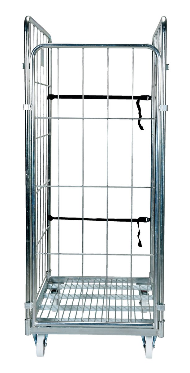 The roller container provides convenient portability between work cells or for delivery or distribution of goods. Unit rolls smoothly on casters. To figure individual uniform shelf capacity divide the number of shelves by total capacity. This particular model includes a single base and (3) three removable sides that can be easily disassembled.