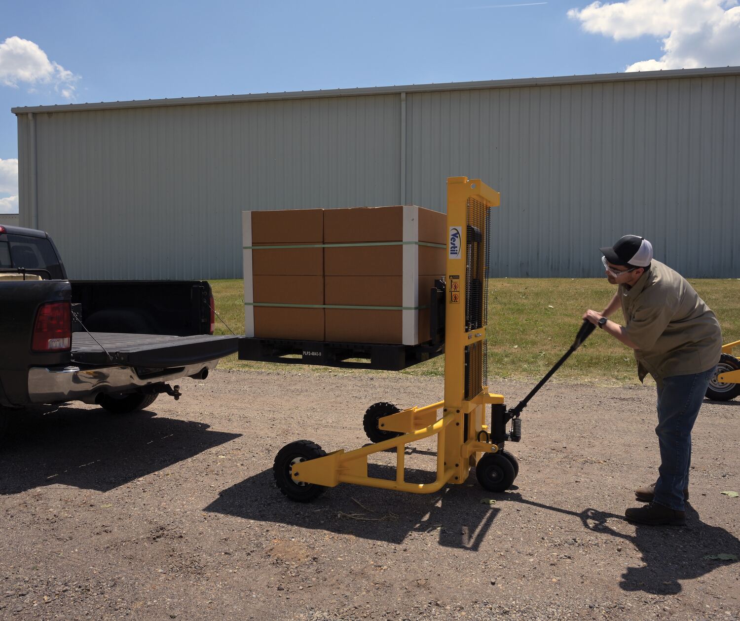 Steel Manual Rough Terrain Stacker 62 In. Raised Height 2,000 Lb. Capacity Yellow