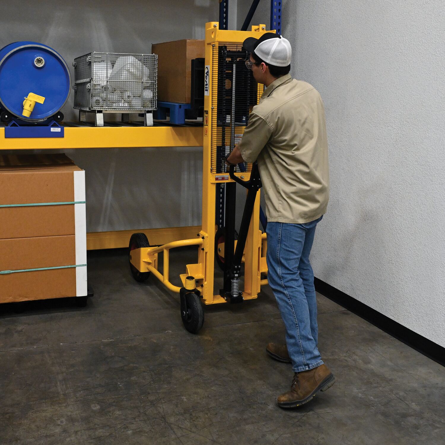 Steel Narrow Manual Rough Terrain Stacker 59 In. Raised Height 1,500 Lb. Capacity Yellow/Black