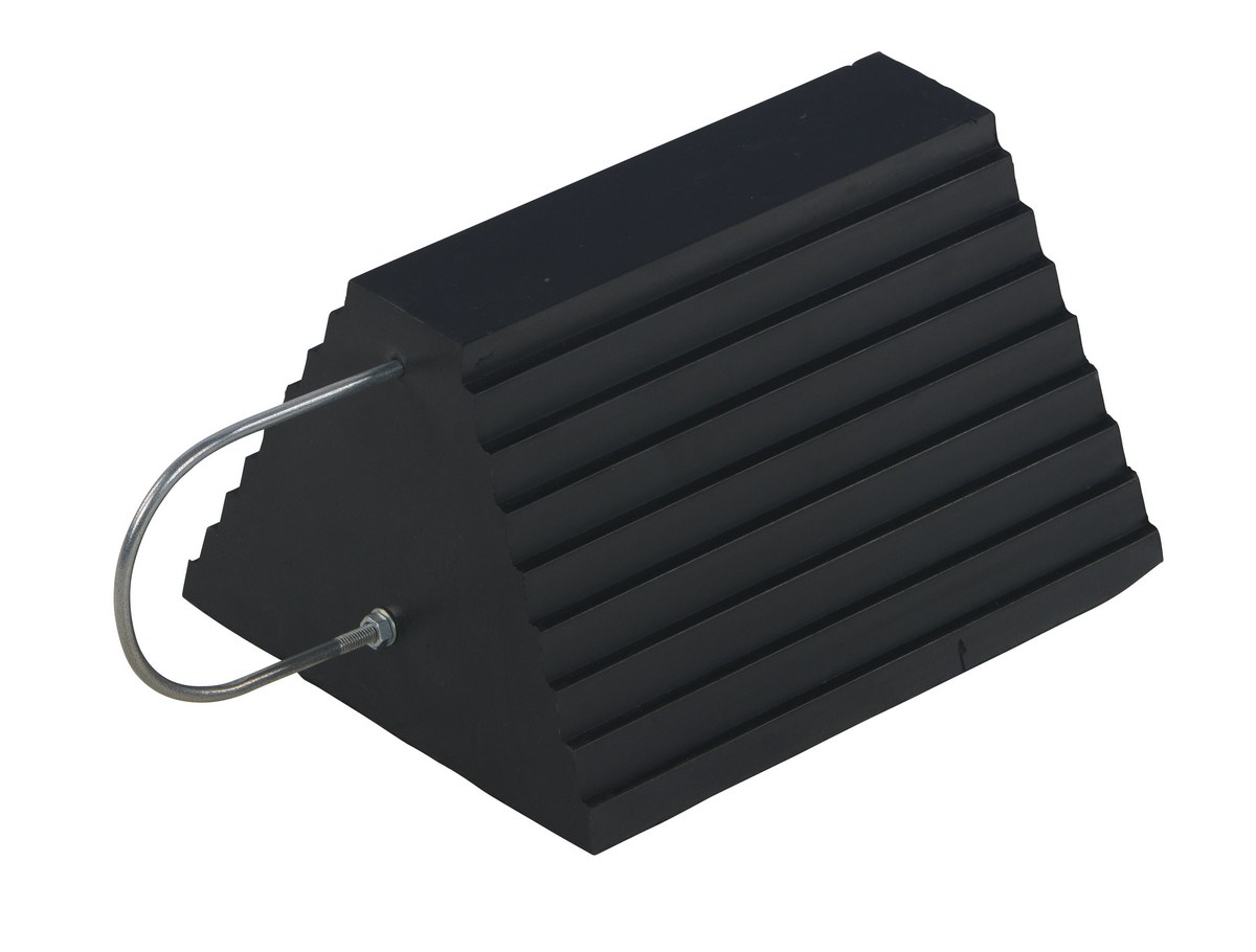 The rubber Wheel Chock with handle is constructed of reinforced rubber to provide a sure grip on virtually any surface. The curved surface contours to fit tires. Rubber resists tearing, abrasion, ozone weathering, etc. The functional design is durable in all weather conditions.
