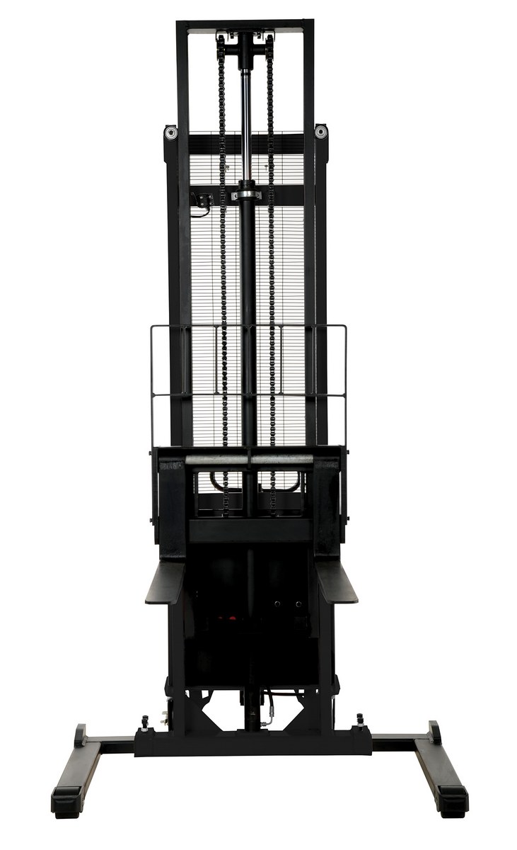 The stacker powered lift is a semi-electric stacker with a powered lift that will raise and lower loads quickly and easily. The manual push operation stacker is made using high quality material and parts. The stacker is easily maneuvered using the standard pulling handle with adjustable forks and adjustable support legs. The stacker is highly efficient and durable while working with pallets or skids. It features an integral battery charger and battery level gauge.