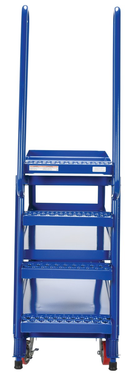 This oversized hi-duty stock picker truck is perfect for large jobs. Ideal for oversized cartons, boxes, parts, and supplies. A spring loaded steel ladder for sure, safe climbing, and loading. Steps have non-skid footing with self-cleaning surface. This stock picker truck has three (3) shelves. Built of durable steel construction. Unit is powder coated a blue finish.