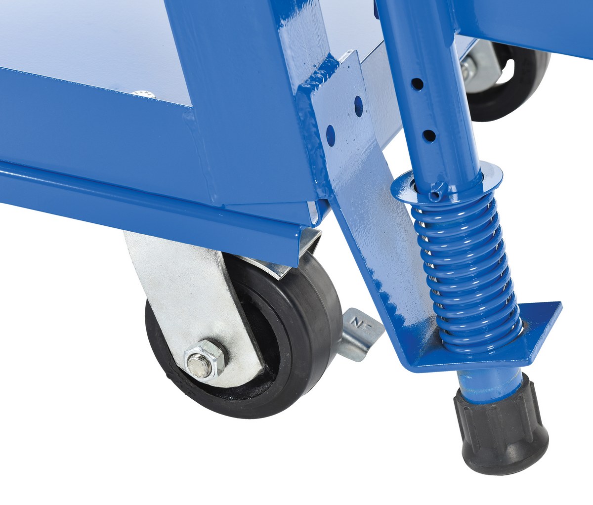 • Spring loaded step ladder holds cart securely in place while a person is standing on the ladder