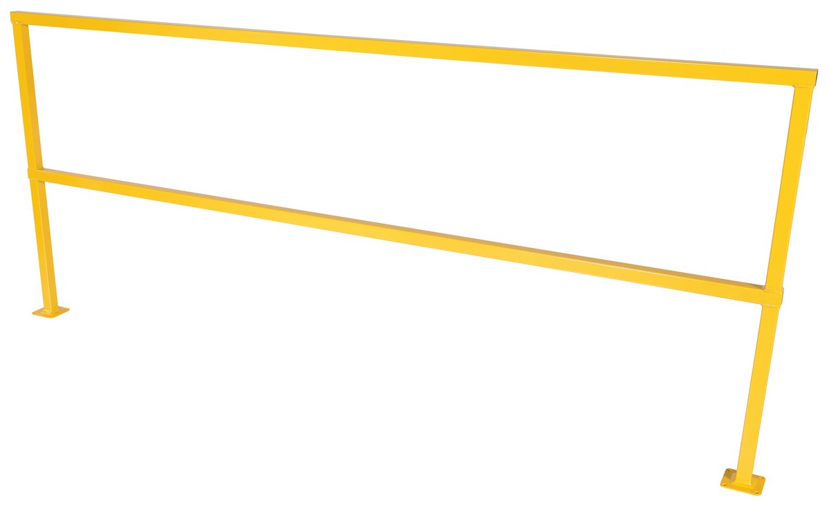 Steel square safety Handrail provides an economical way to protect people and machinery. Applications include loading docks, floor openings, walkways, and mezzanines. Highly visible safety yellow powder coat finish, hardware included.