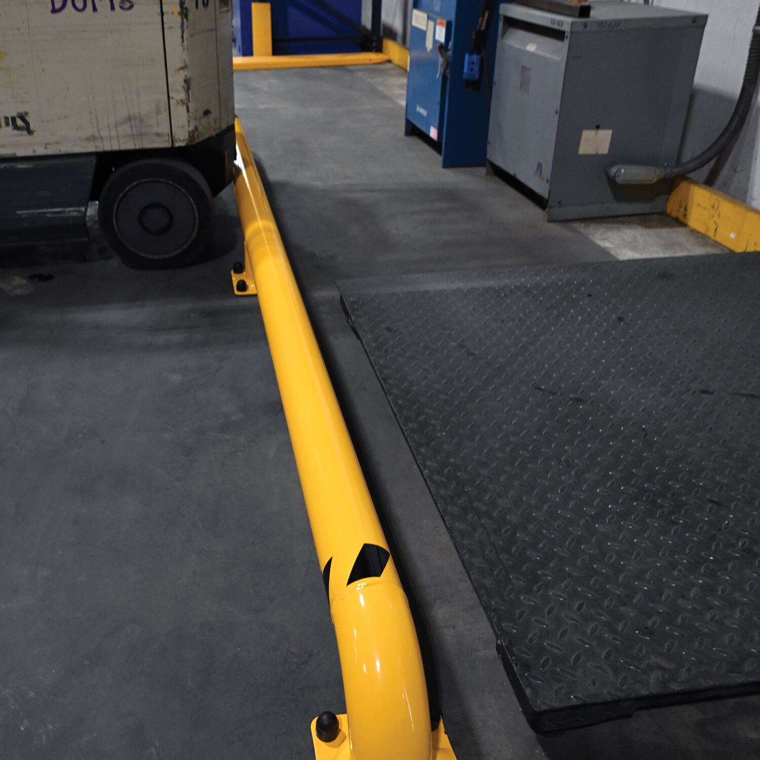 The wheel alignment curb is ideal for properly aligning trailers at loading docks. Suitable for indoor or outdoor use. Curb must be secured to surface. Yellow powder-coat finish.