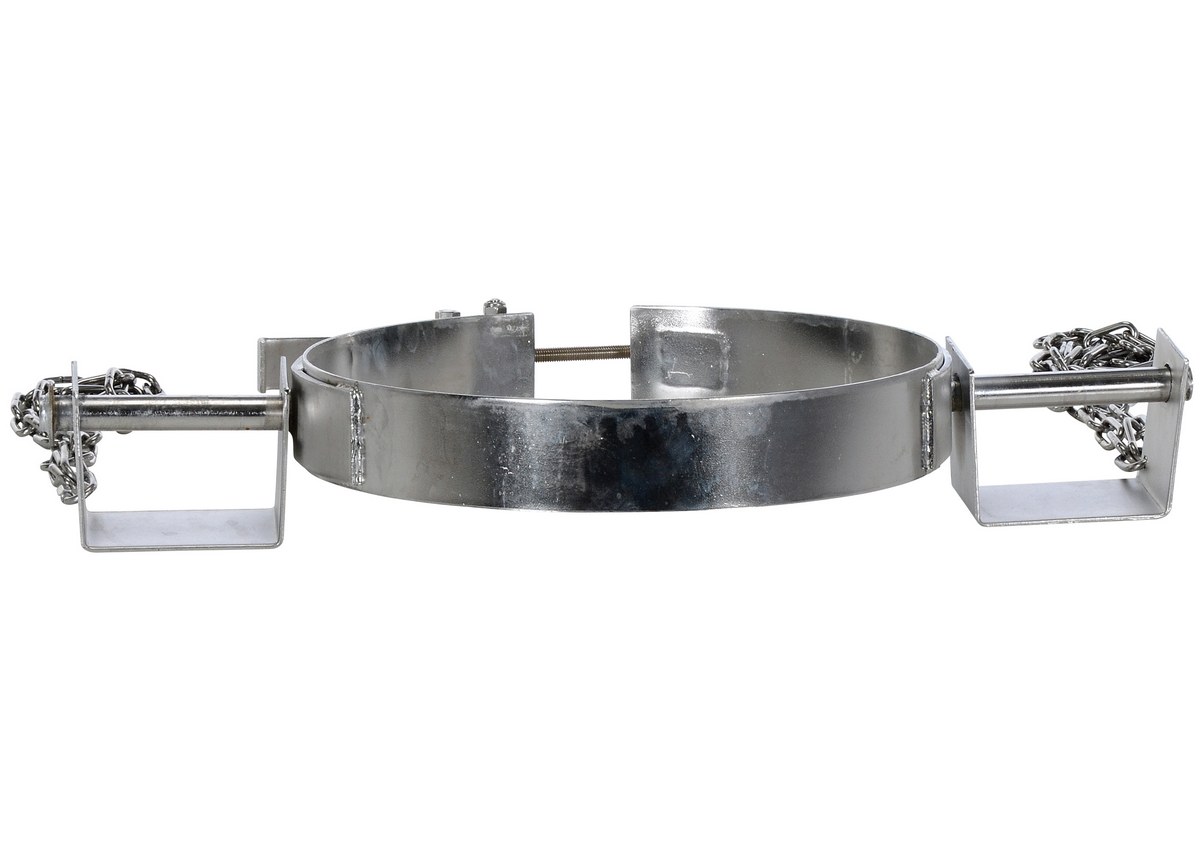 Easily transport steel drums with your fork truck and the tilting drum ring. Pivoting fork pockets allow you to manually rotate drum to dispense light materials. To use, slip the band over the belly of the steel drum and tighten the lock to secure the band around the belly of the drum. Welded steel construction.