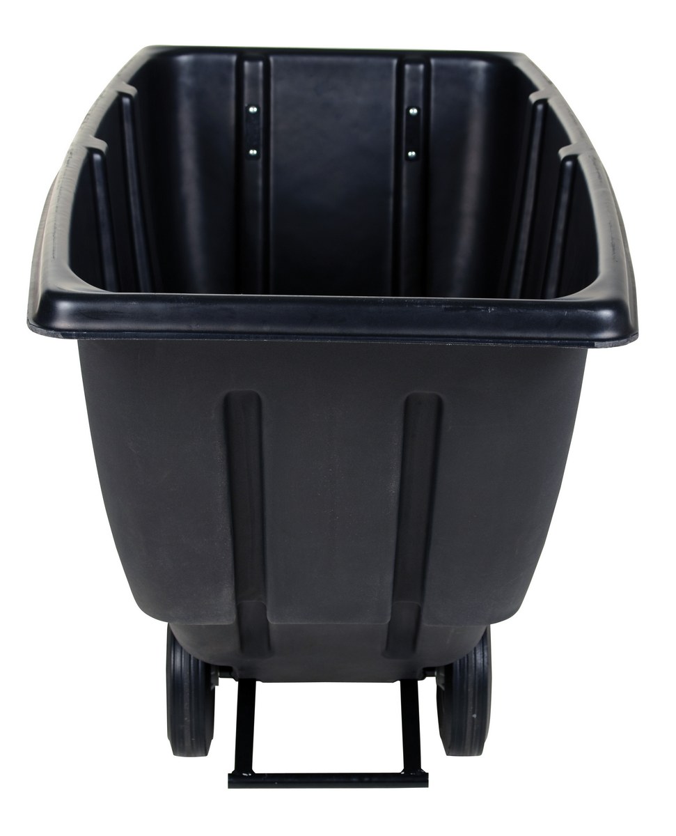 Plastic Light Duty Tilt Truck 1/2 Cubic Yard 450 Lb. Capacity BlackDurable plastic construction allows for collecting waste from multiple bins at a collective time. Great for warehouses, fairs, ball parks, schools, etc. Strong, one-piece molded polyethylene body with steel base tip support and a balanced design to allow for simple dumping by one person. Easily portable on 2 large rubber wheels and two swivel wheels. Not for use with fork trucks. Black color design.