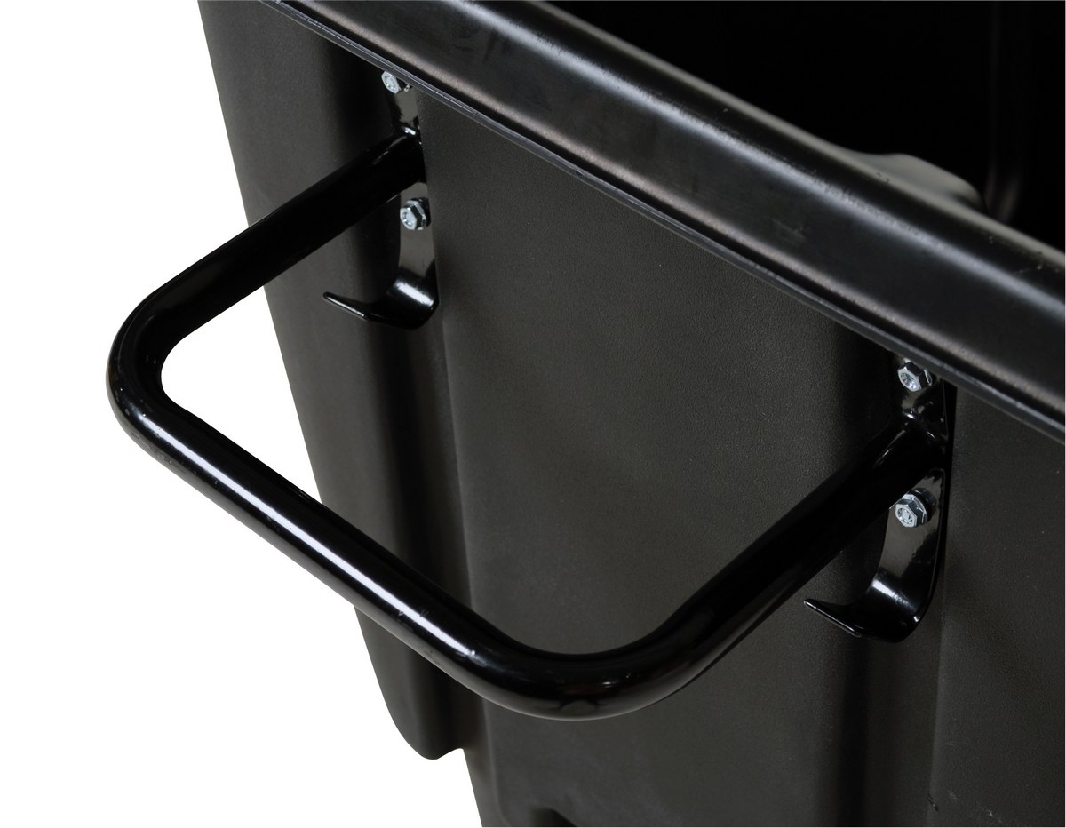 Durable plastic construction allows for collecting waste from multiple bins at a collective time. Great for warehouses, fairs, ball parks, schools, etc. Strong, one-piece molded polyethylene body with steel base tip support and a balanced design to allow for simple dumping by one person. Easily portable on 2 large rubber wheels and two swivel wheels. Not for use with fork trucks. Black color design.