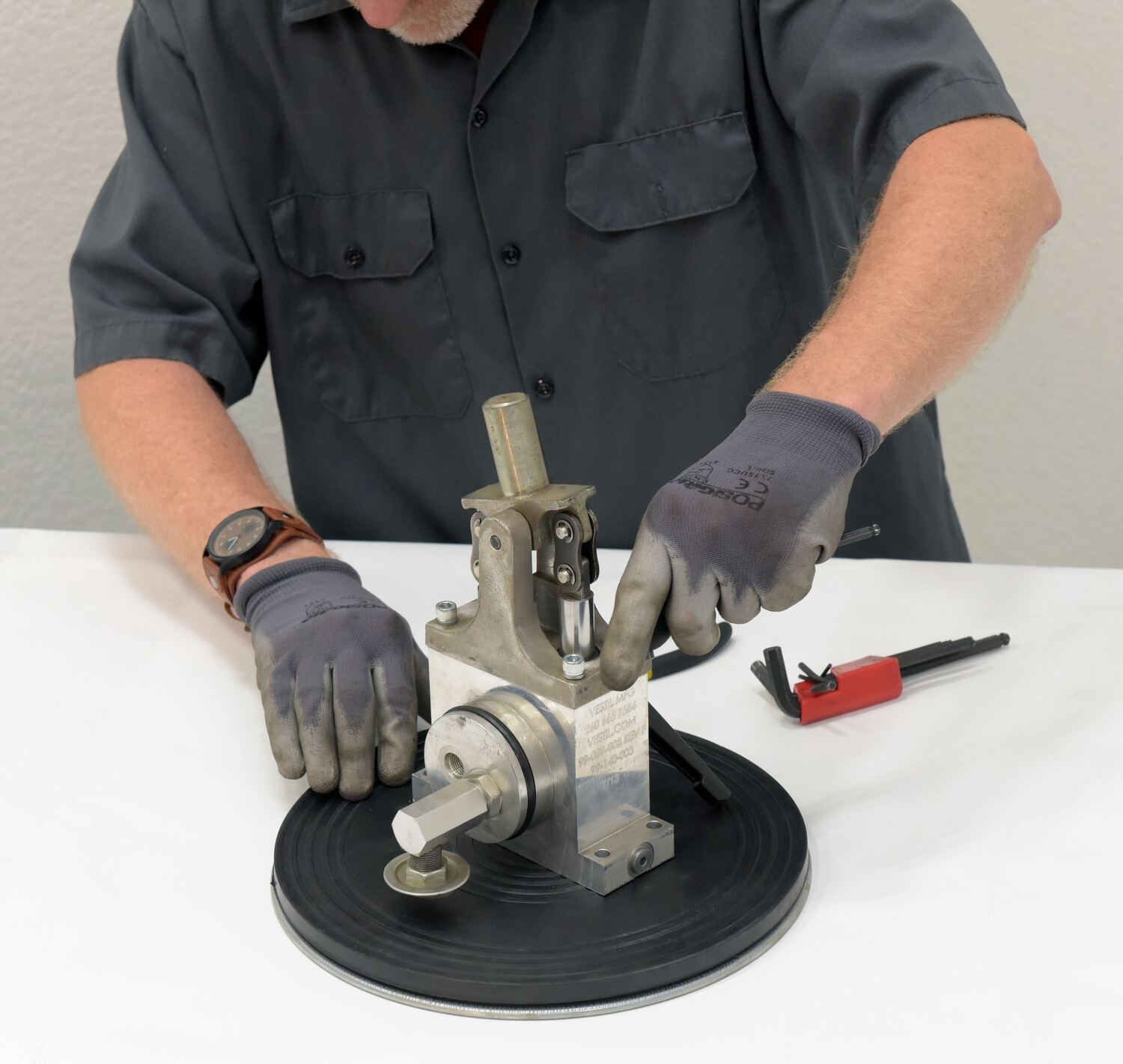 • Rubber top surface provides added grip while turning product
