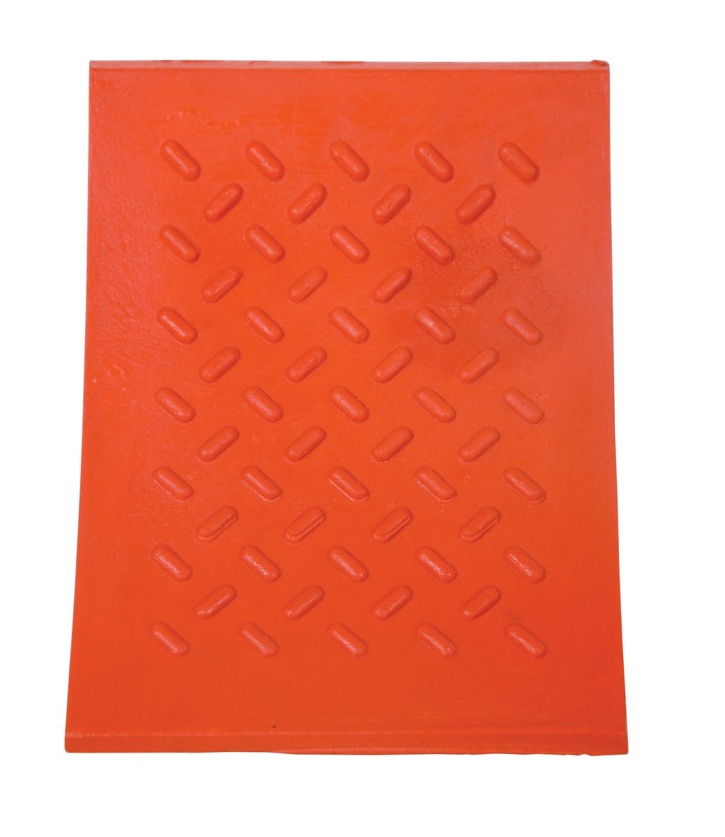The mini urethane Wheel Chock is bright orange for greater visibility. Incoming and outgoing drivers can easily see for added safety. Safety tread on chock face provides better grip and reduces slippage. There is a mold-in hole through width of chock for attaching chain (chain not included).