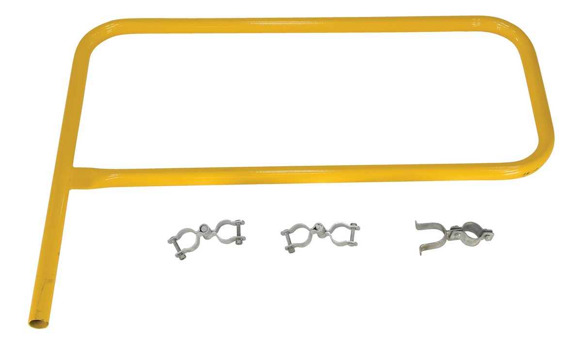 The steel gate works great as an addition to the pipe safety railing. The steel construction is durable and visible with a yellow finish. Hardware for simple installation is included.