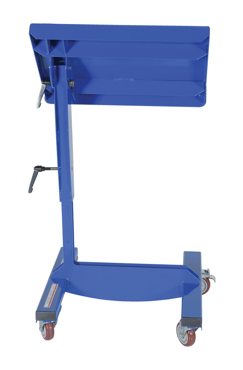 The mobile tilting work table is designed to bring work to an ergonomically correct position. A raised edge provides stability when completing forms or compiling inventory data. Open design that is accessible form all sides.
